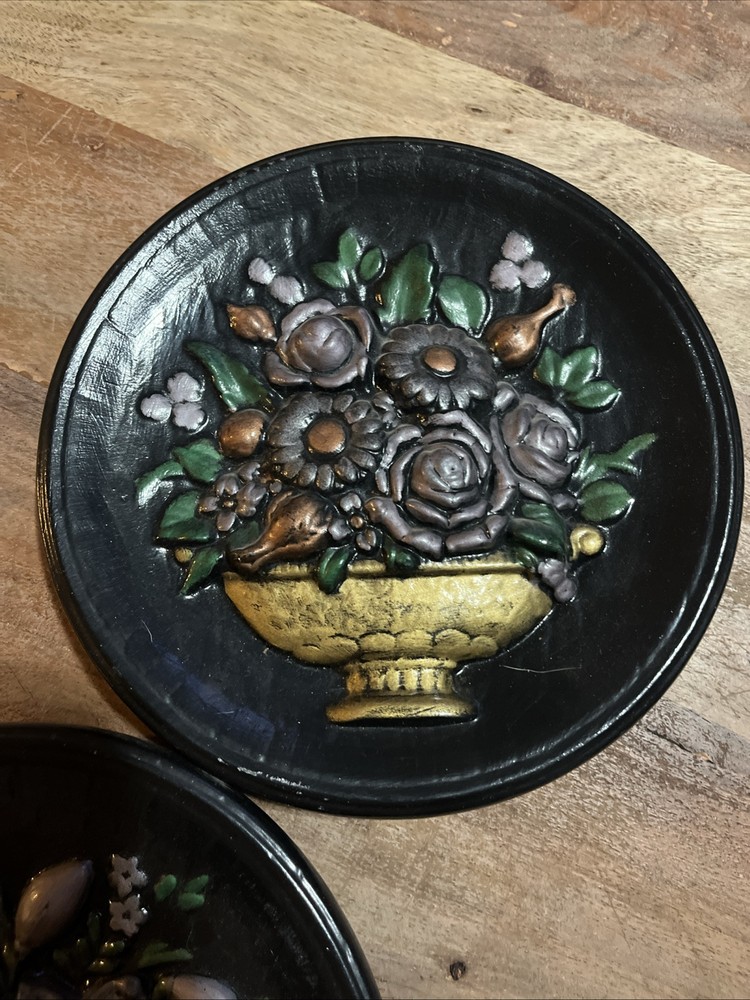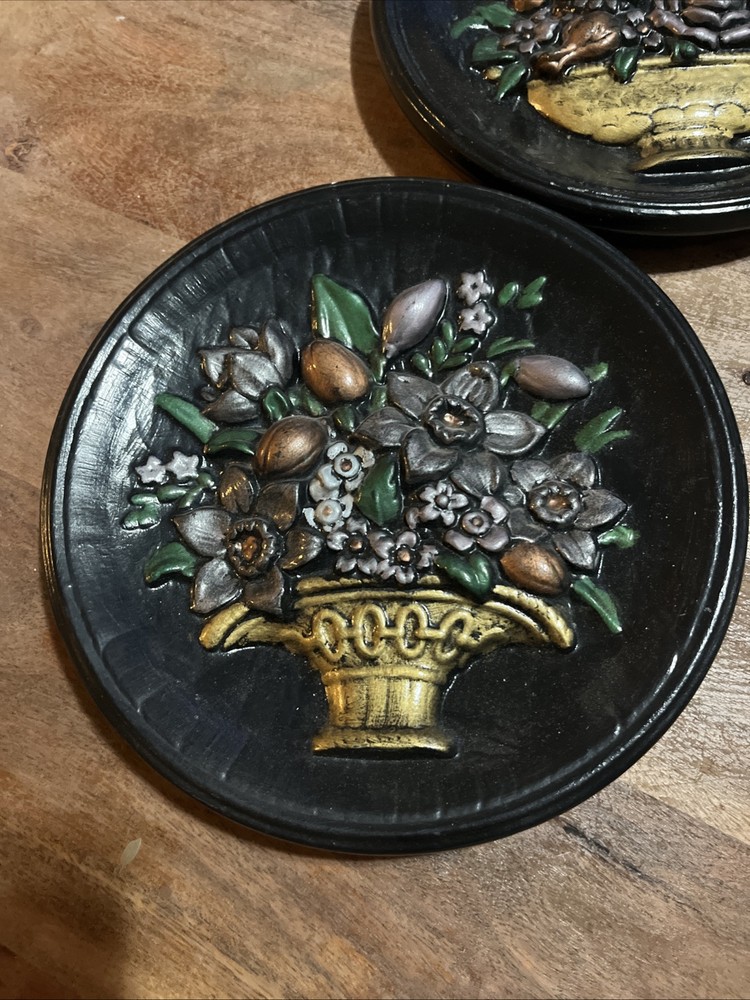 Add some vintage charm to your home decor with this beautiful set of two ceramic decorative plates. The plates feature a gorgeous hand-painted floral bouquet pattern, with a glossy finish that makes them shine in the light. These round plates have a diameter of 8 5/8" and a depth of 1 1/8", making them perfect for display on a mantle or wall. Crafted using traditional pottery techniques, these plates are a unique and eye-catching addition to any room. They are both handmade and vintage, with an original design that is perfect for any occasion. The set includes two plates, and they are easy to care for with hand wash only instructions. Bring the beauty of nature into your home with these beautiful floral decorative plates.