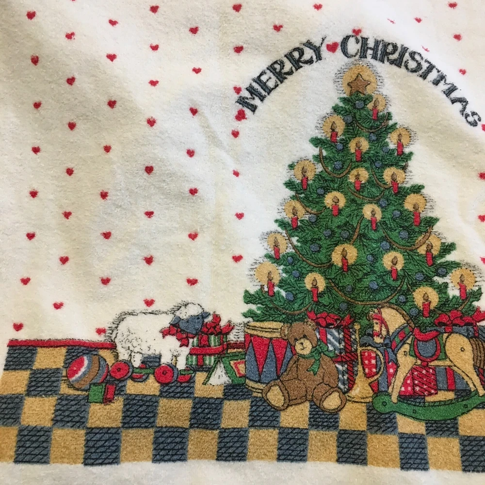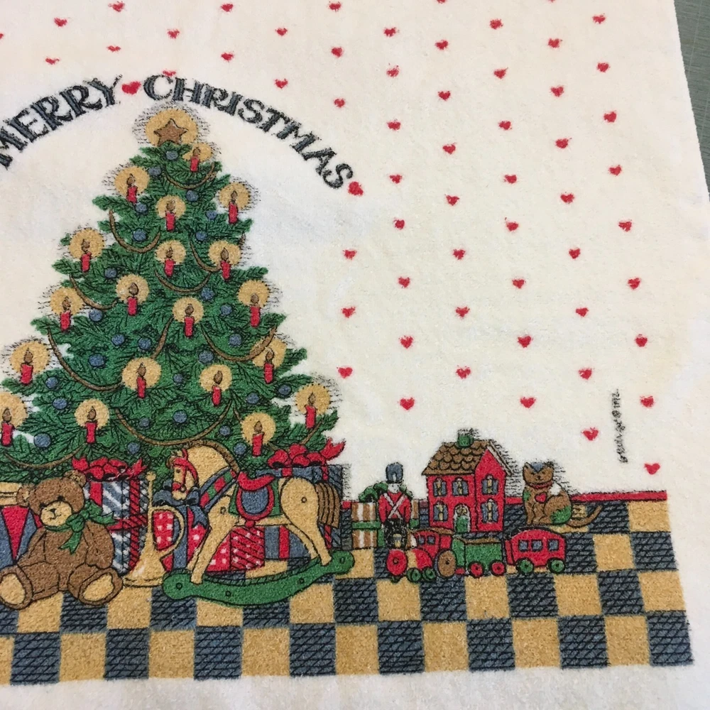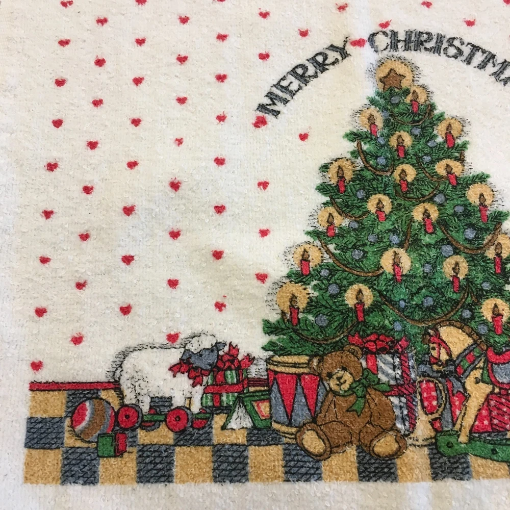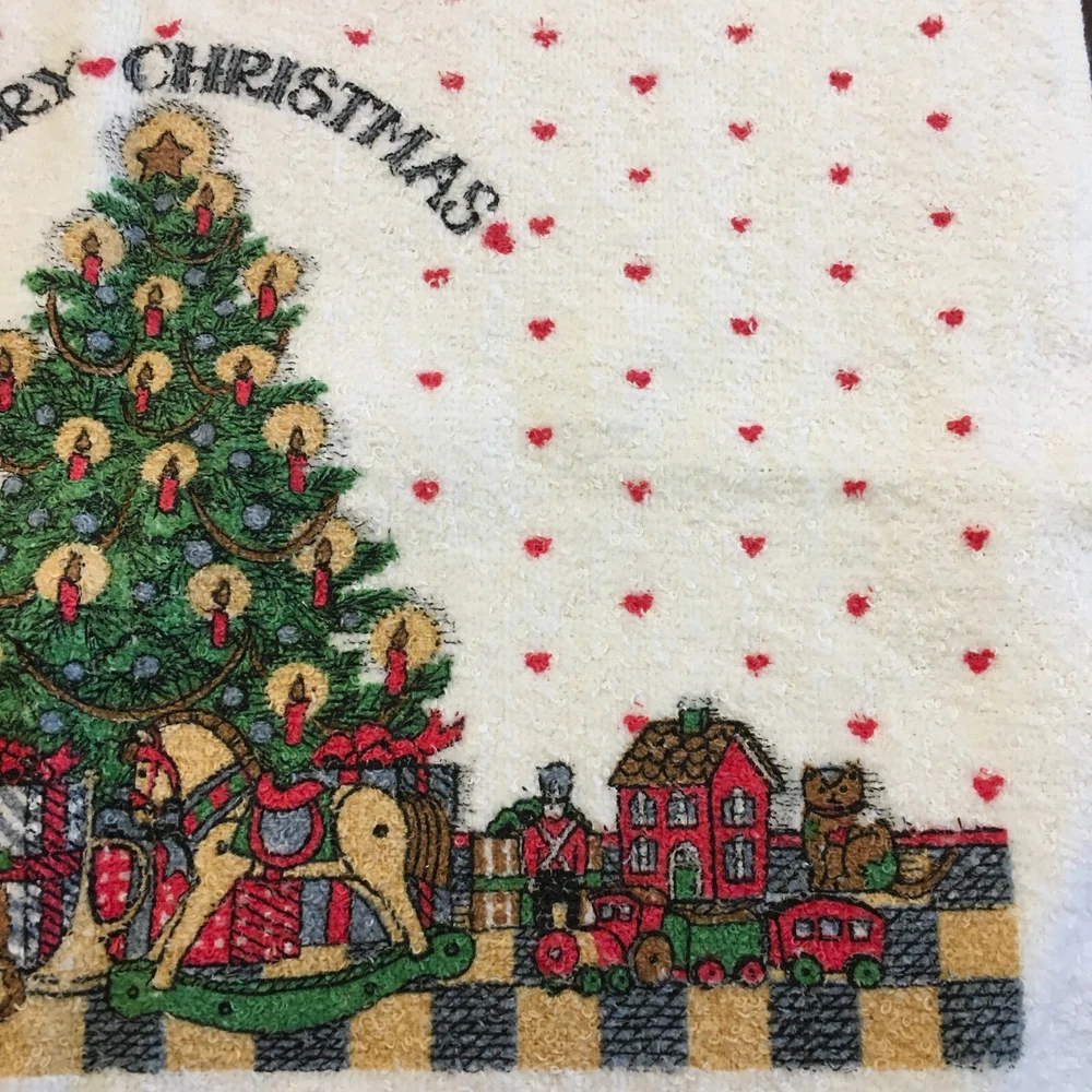 This wonderful, hard to find 3 Pc. bath set of Susan Winget art would be perfect for a guest at Christmastime. A full bath towel, a hand/guest towel, and a washcloth - all in Excellent Condition. The bath towel measures 23 1/2" x 41". The hand towel measures 15 1/2" x 23 1/2". The washcloth measures 11 1/2" x 12". Please look at all photos closely. Condition is "Used." Ships with USPS Ground Advantage.