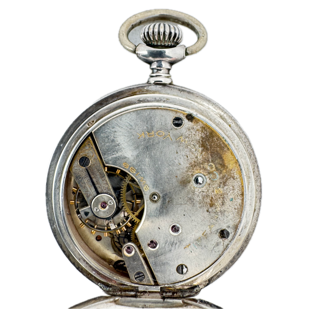 Antique 41mm Tiffany & Co. Mechanical Pocket Watch Longines Sterling Silver Product Description Item: Pocket Watch Brand: Tiffany & Co. Movement: Mechanical Case Material: Sterling Silver Gender: Unisex Caliber: Longines Size: 41mm Product Measurements Diameter: 41mm Product Condition Overall Condition: Poor, overall condition for its age. Functions: Not running but the balance complete is in good condition. Case: There are scratches on the case. Crystal: There are scratches on the crystal. Dial: The dial has spotting.