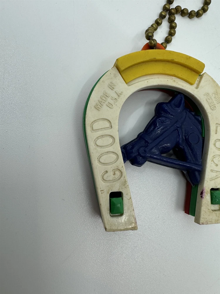 Vintage 50s/60s Horseshoe Good Luck Key Chain Puzzle Game /w 3 Horseshoes Item is in vintage pre-owned condition and may show some signs of use and wear/tear. Please check out the pictures and let me know if you have any questions. Thank you for checking out my shop! :) Our hand-selected products are carefully examined, photographed, and stored in a smoke-free environment. Orders received by 2pm ET generally ship the next business day from Pennsylvania via USPS. I'm happy to combine shipping on orders; eBay should provide a combined shipping quote in many cases. I can always combine shipping manually as well if that is helpful.
