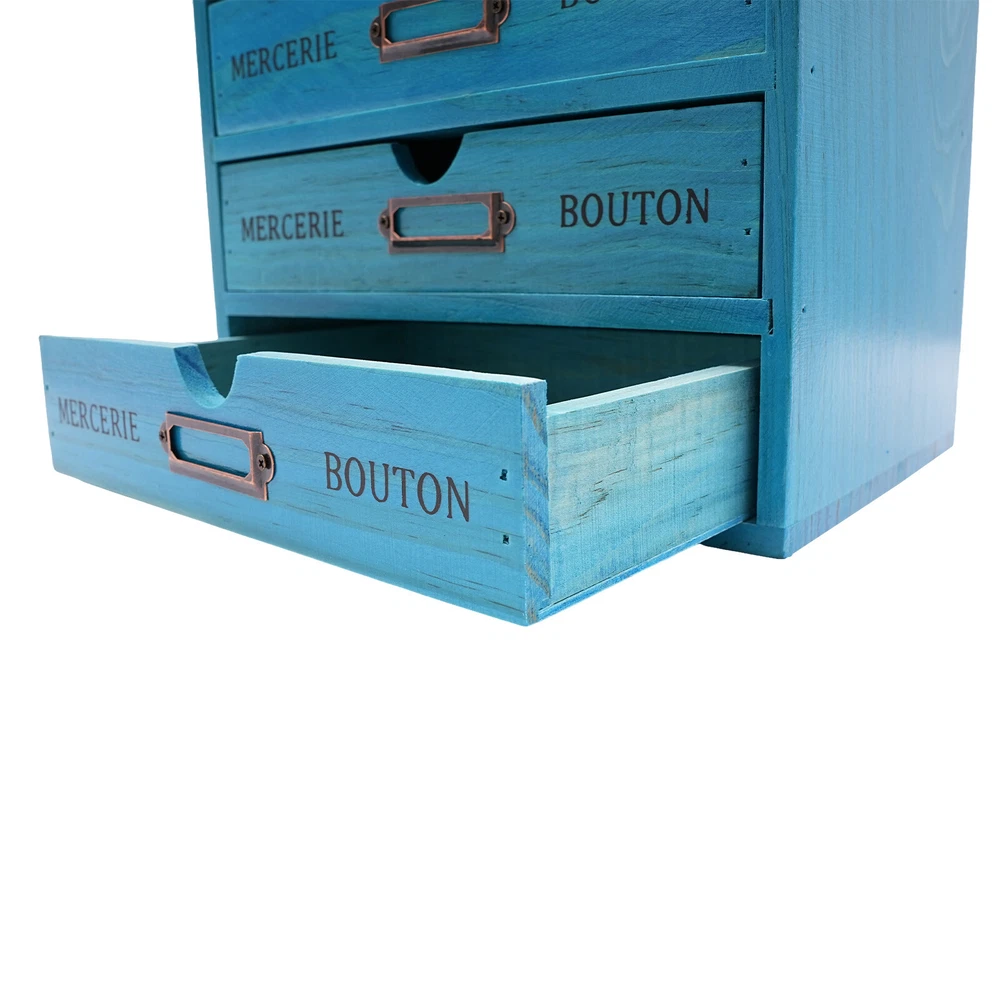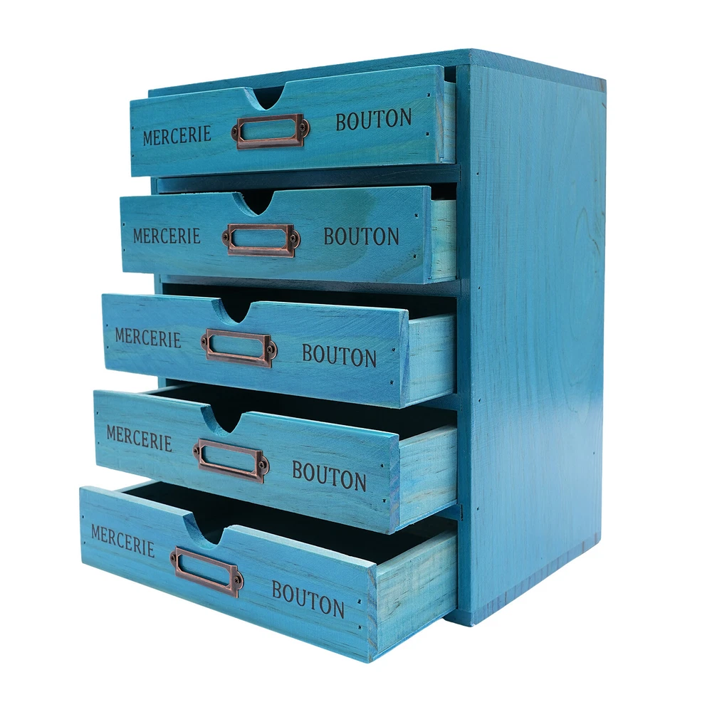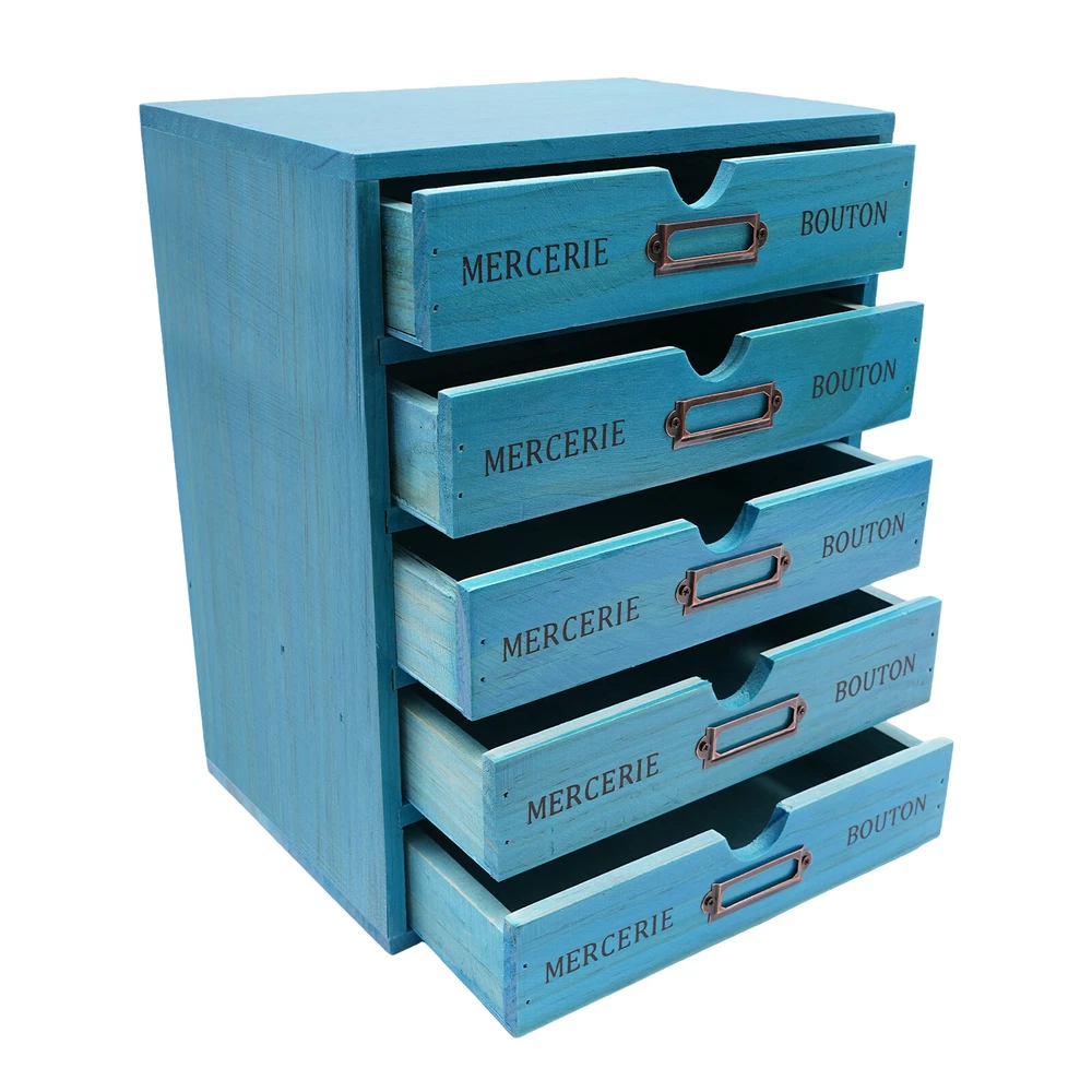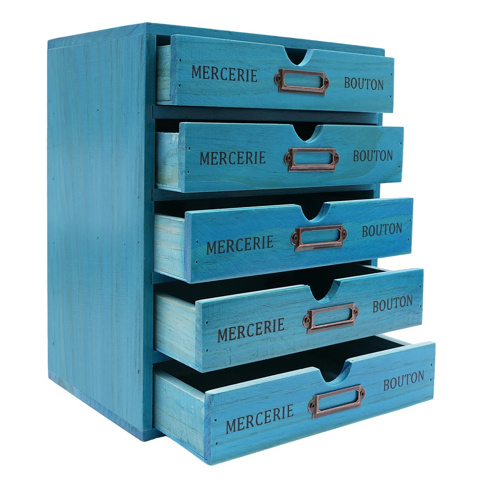 Vintage 5-Tier Drawer Cabinet Desk Organizer Box Office Desktop File Drawer Specifications Color: Blue Style: Vintage Shape: Rectangular Material: Pine Wood Process: Painting Number of Drawers: 5 Assembly Required: No Mount Type: Tabletop Each Drawer Size(L*H): 23*5cm/9*2in Overall Product Size: 25*17.5*31cm/10*6.9*12.2in Gross Weight: 2.4kg/5.29lbs Net Weight: 2kg/4.41lbs Package Size: 25.7*18*32cm/10.12*7.09*12.6in Package Included 1* Drawer Organizer Description This drawer organizer adopts a five-tier design. It is designed to make full use of space and achieves fine classification storage so that it will make your life and work more orderly. The retro style shows an antique charm, which can express a refined sense of fashion. You can put labels in label holders to help you quickly find what you need, so it will become your ideal storage assistant. Key Features High-quality Material: It is made of high-quality pine wood with a painting process, providing it with good corrosion resistance and a long service life. Spacious Storage : The five 9*2in drawers allow you to store jewelry, cosmetics, documents, and other small items, making your desktop neater. In addition, the spacious top space can also hold potted plants, cups, decorations, etc. (not included), making your room more organized. Stable Structure : Thickened pine wood and rectangular structure provide it with stable construction, making it not easily shaken, and considerably increasing its use of security. Vintage Appearance: The pleasing blue color, vintage label holder, rectangular structure, and smooth lines give it a retro style, adding beauty and vintage elements to your room. It plays a unique decorative role while using, bringing an old-world charm into your new-world home. Thoughtful Design : The drawers help protect your documents or belongings from dust or moisture, thus maximizing the preservation of your items. Ready to Use : You can use this product directly after receiving it without tedious and complicated assembly, saving you time and labor. Hassle-free Cleaning: Thanks to its smooth surface and removable design, you can easily clean it with water and a rag (not included). Ideal Gift: With a delicate outlook and practical storage function, it is a wonderful housewarming, wedding, or festival gift for your families, friends, or colleagues. Details Label Frames: They provide great convenience for placing classification labels (not included), allowing for quickly finding the required items. Smooth Edges: They can effectively protect your hands from being scratched when using or cleaning this product. U-shaped Holes: Five U-shaped holes on the drawers make it easier for you to pull out and close the drawer. Application This product can be used in living rooms, bedrooms, study rooms, offices, dormitories, kitchens, schools, coffee and tea bars, and other places. It can be used to store cosmetics, jewelry, books, letters, papers, magazines, tea bags, sugar packets, necklaces, earrings, bracelets, rings, perfumes, lipsticks, household medications, herbs, nutrition-related capsules, and other items. Notes Please note that this product does not include other items shown in the picture. Please do not place it in a damp place or near an ignition source. Please allow the slight color difference caused by the shooting light and 1-3cm error due to manual measurement and make sure you do not mind before ordering. Payment Delivery details Terms of sales About us Contact us Payment We accept ebay payment γ Fees such as import duties, taxes are not included in the item price or shipping costs. These charges are the buyer's responsibility. Delivery details Shipping: 2-9 working days to: USA Terms of sales We maintain high standards of excellence and strive for hundred percent customer satisfaction. Feedback is very important to us. We hope that you contact us immediately before you give neutral or negative feedback, so that we can address your concerns. It is impossible to address issues if we do not know about them! About us Your satis faction is our ultimate goal. We work hard to earn your trust and future business. Our certified technicians have tested each item before shipping. The unit comes with 1 year limited warranty on all manufacturing defects. a) If you receive a defective item, you may return it or ask for a discount. Please contact us within 14 days after you receive the package. b) What you returned must be intact and in its original packaging as re? u. Customer is responsible for shipping costs of the returned item. c) We will cover the cost of shipping back t with the shipping rate indicated in the registration page. We will send you a new unit or refund the full payment you paid. Thank you. Contact us Business Hour Business Hour: Monday To Friday: 8:30 AM to 5:00 PM (Beijing China time) Due to time zones, our reply to your questions may not be immediately. But within above working time, we will reply your email within 24 hours. If it's non-workdays, please kindly be patient and wait till Monday. Please contact us with ebay message. Please feel free to contact us if you have any questions. Monday To Friday: 8:30 AM to 5:00 PM (Beijing China time) Due to time zones, our reply to your questions may not be immediately. But within above working time, we will reply your email within 24 hours. If it's non-workdays, please kindly be patient and wait till Monday. Please contact us with ebay message. Please feel free to contact us if you have any questions. On Jun 5, 2025 at 20:55:03 PDT, seller added the following information: