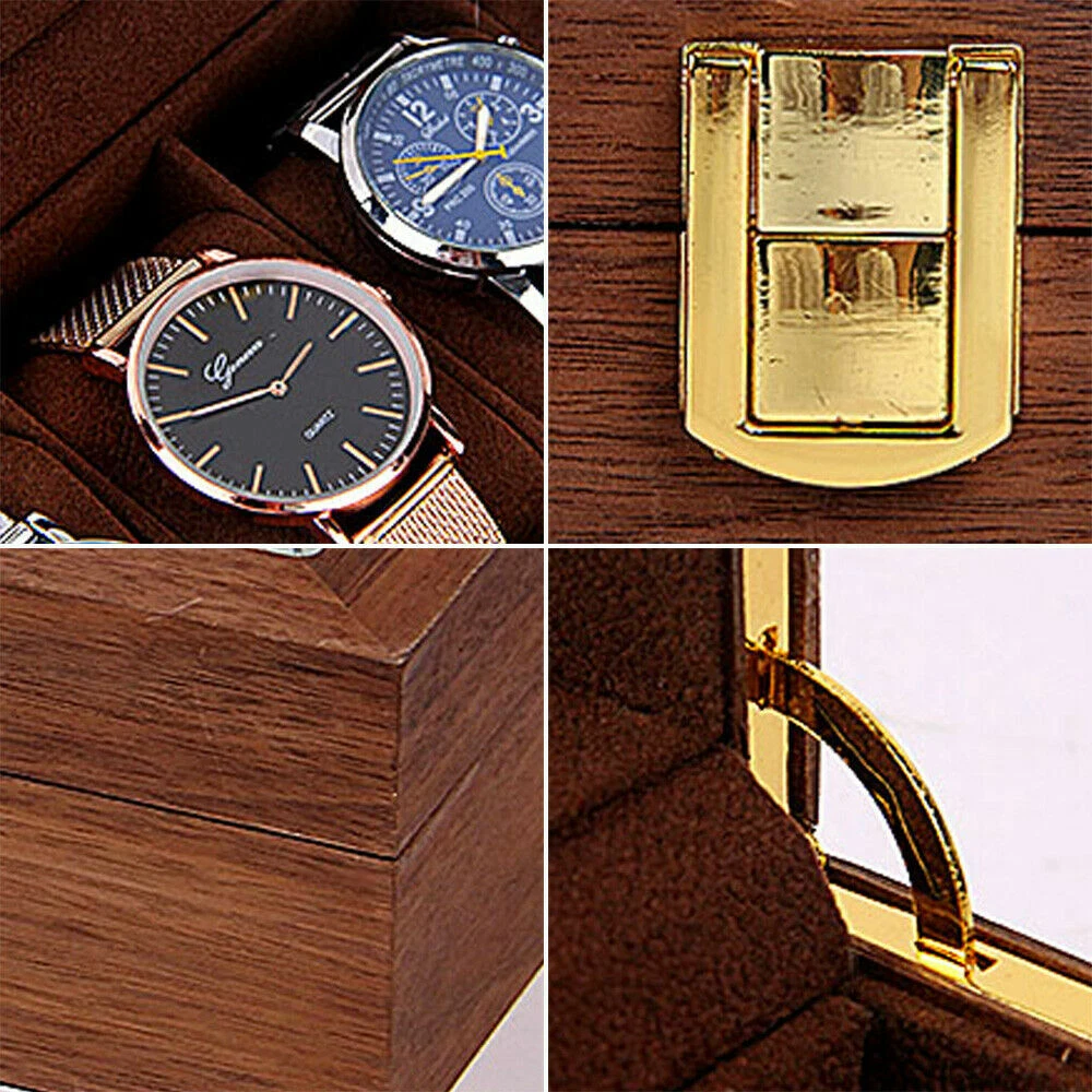 $ 16.5210-Slot Wooden Watch Box with Glass Top for Jewelry Storage & Display