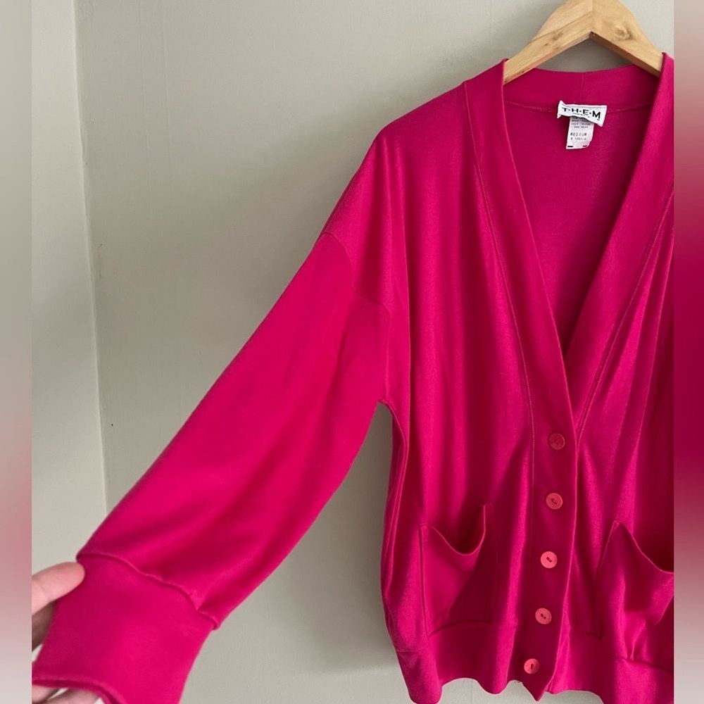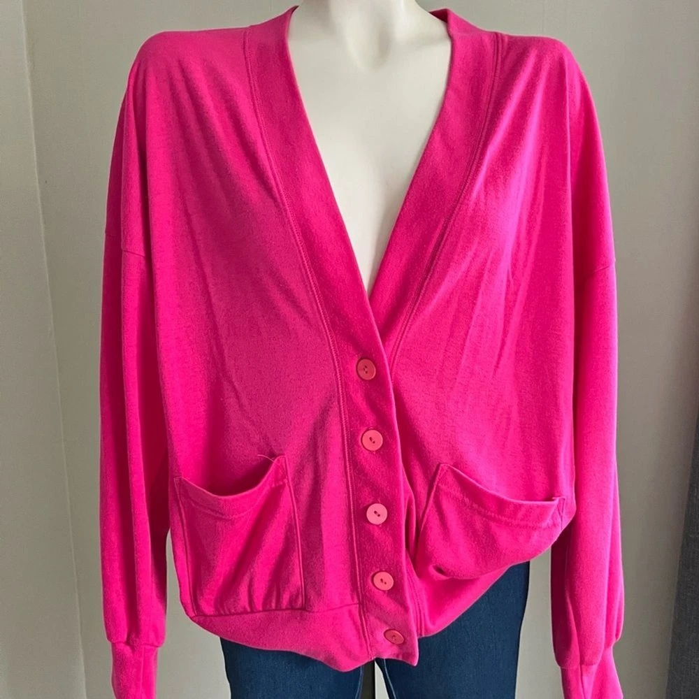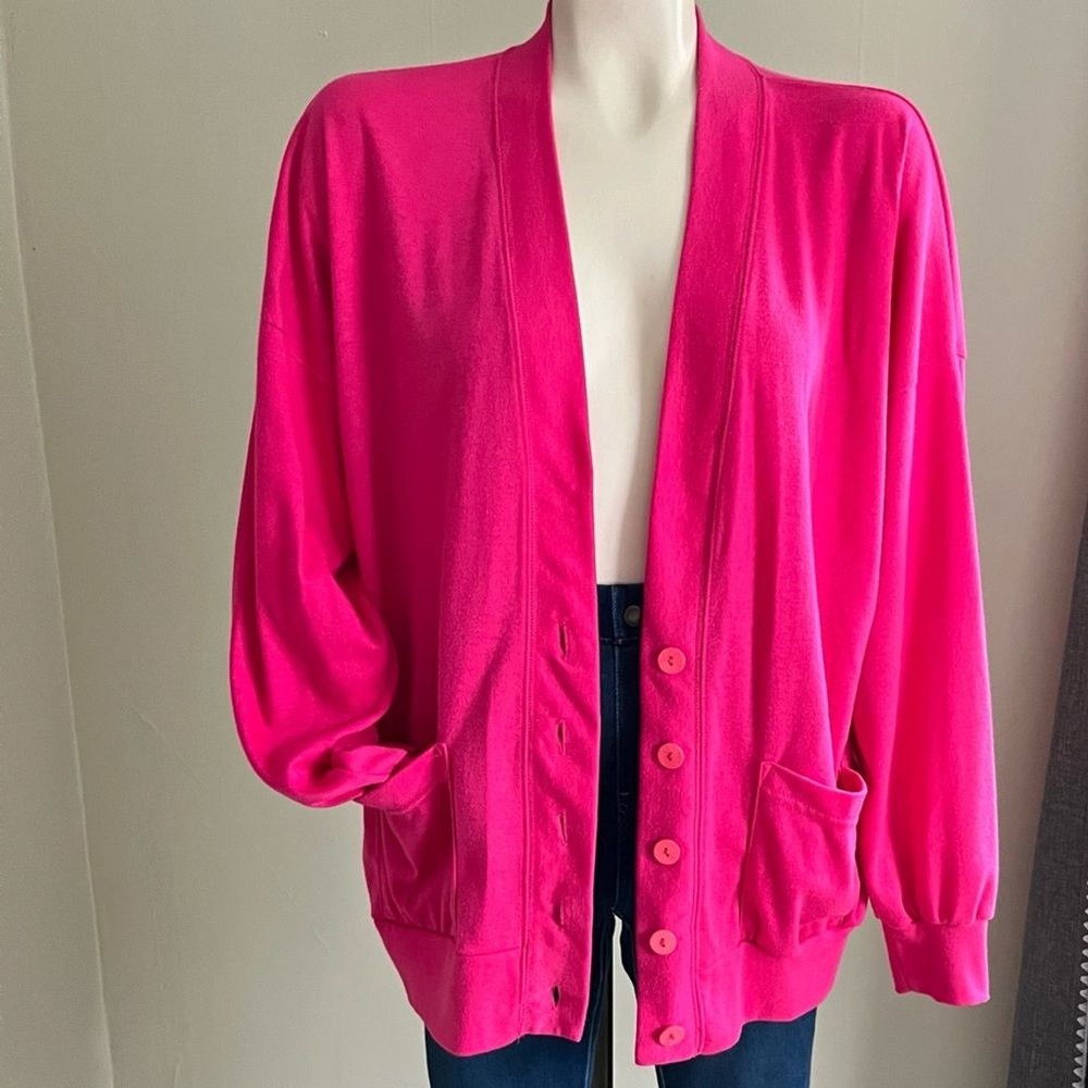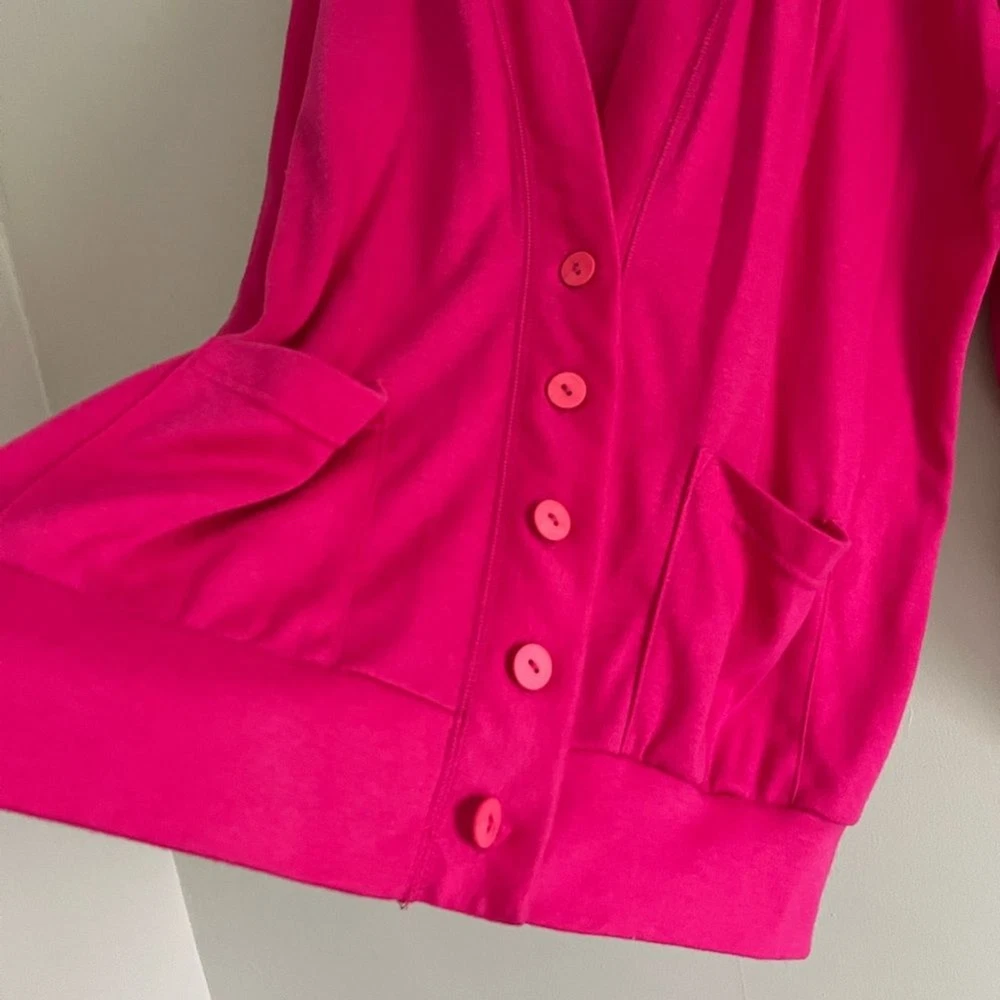 Sz M Hot pink cardigan Button front Lightweight knit Front pockets Great condition! Approx measurements laying flat Length 28” Pit-Pit 23-24” (relaxed fit)