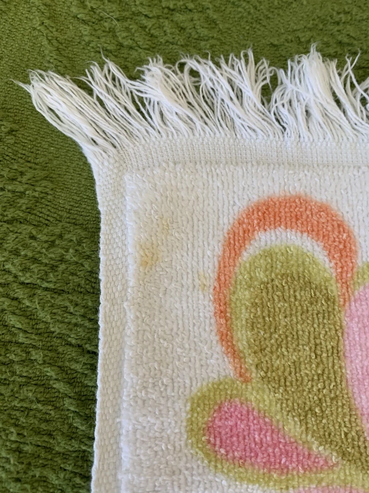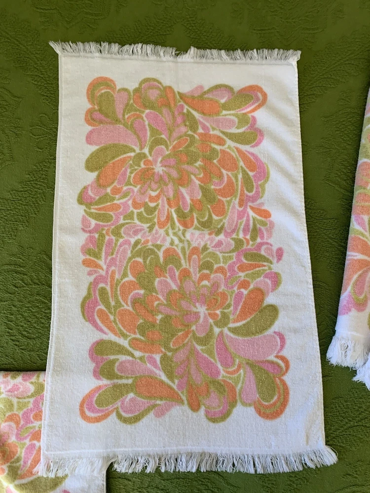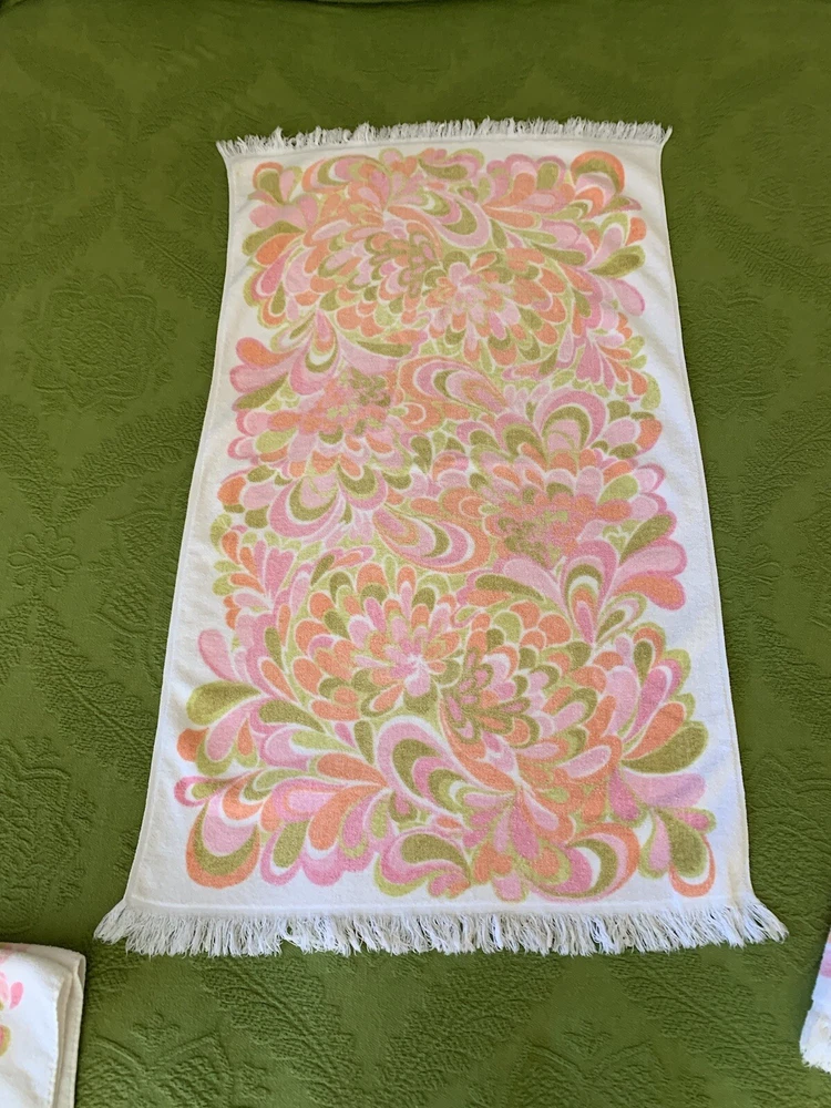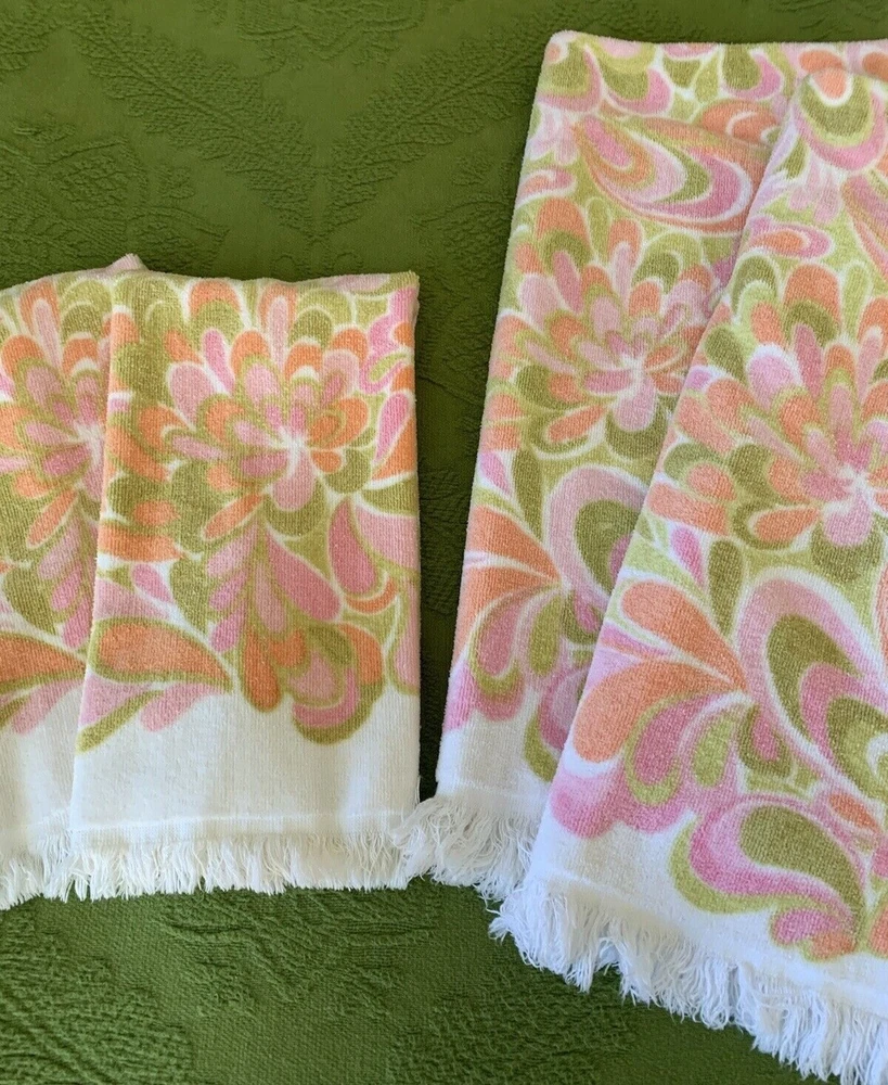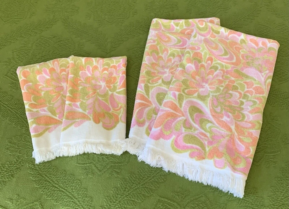 Fun and rare set of 4 bathroom towels in great vintage condition with minimal wear (see photos). Bath towels measure 40 X 24 inches and hand towels measure 26 X 16 inches. Message me with any questions and thanks for shopping my store. Be sure to check out my other vintage items. Please keep in mind these are vintage items and will have some wear.