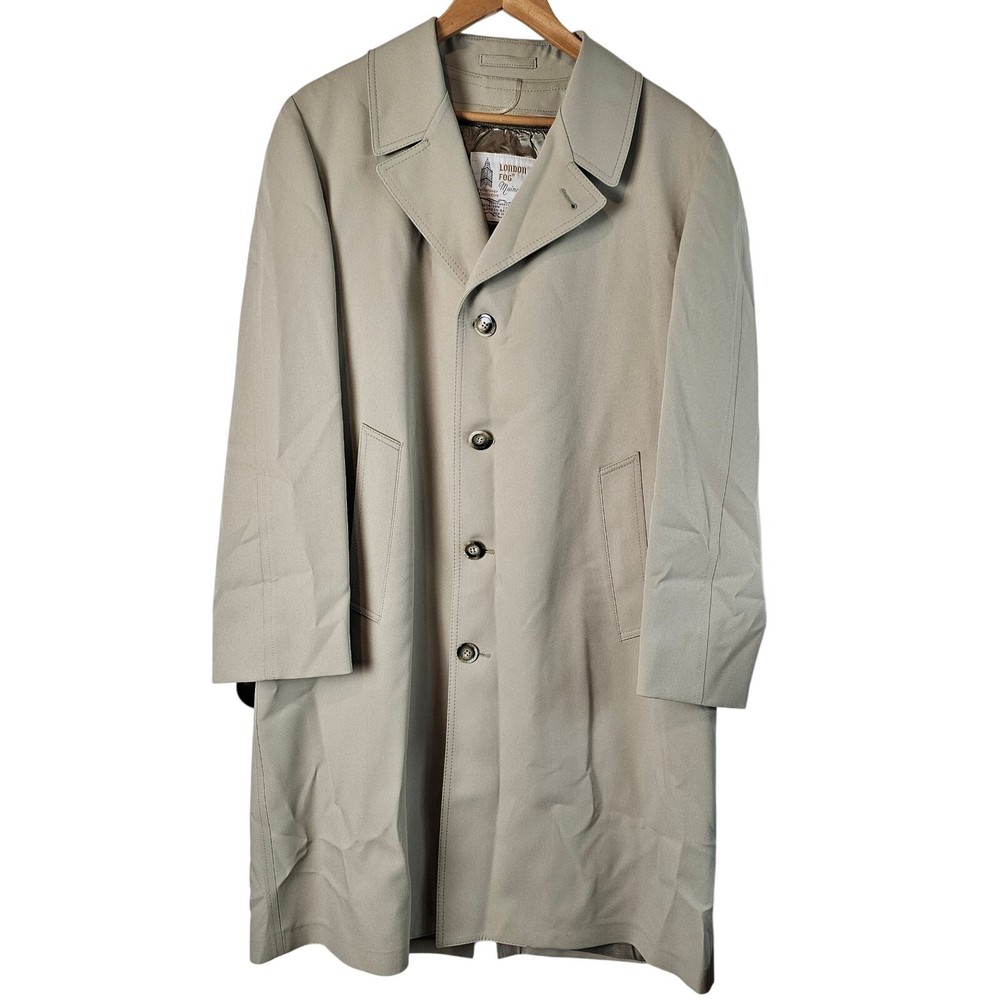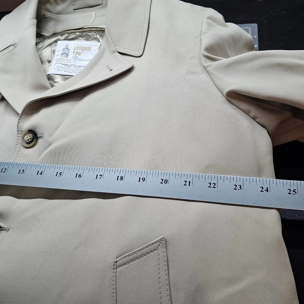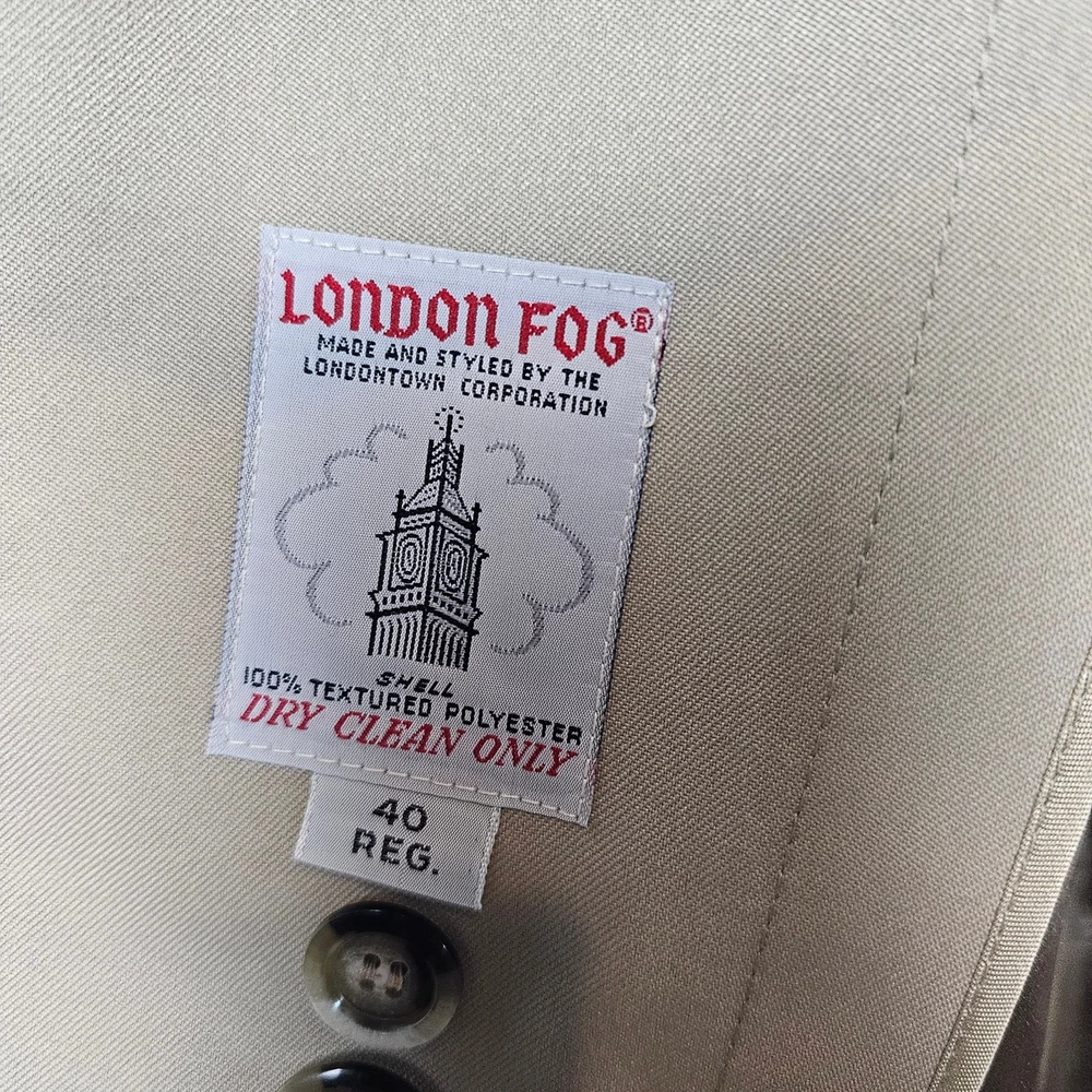 Vintage London Fog Maincoats Trench Coat Mens Size 40 Tan Business Classic 70s -Great condition! -Full button closure -Removable soft liner with zipper -Back button bottom slit -Double stitching throughout -Pockets -polyester and acrylic -Weatherwear of distinction -Heavy Coat, warm -Business, professional, classic, neutral Measurements in photos. Same day / next day shipping Offers accepted Like for price drops and deals Bundle 2 items or more and save! Thank you! 3lb 12oz O