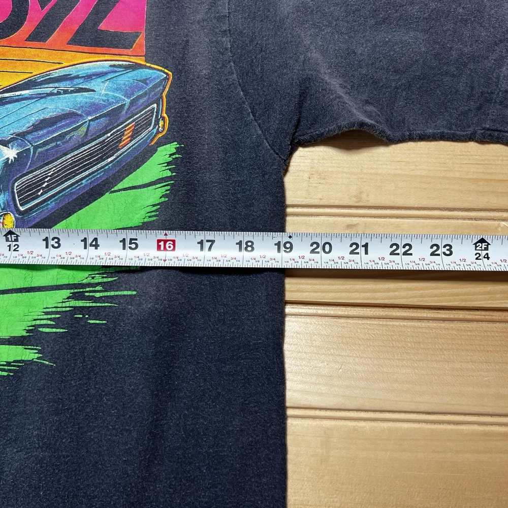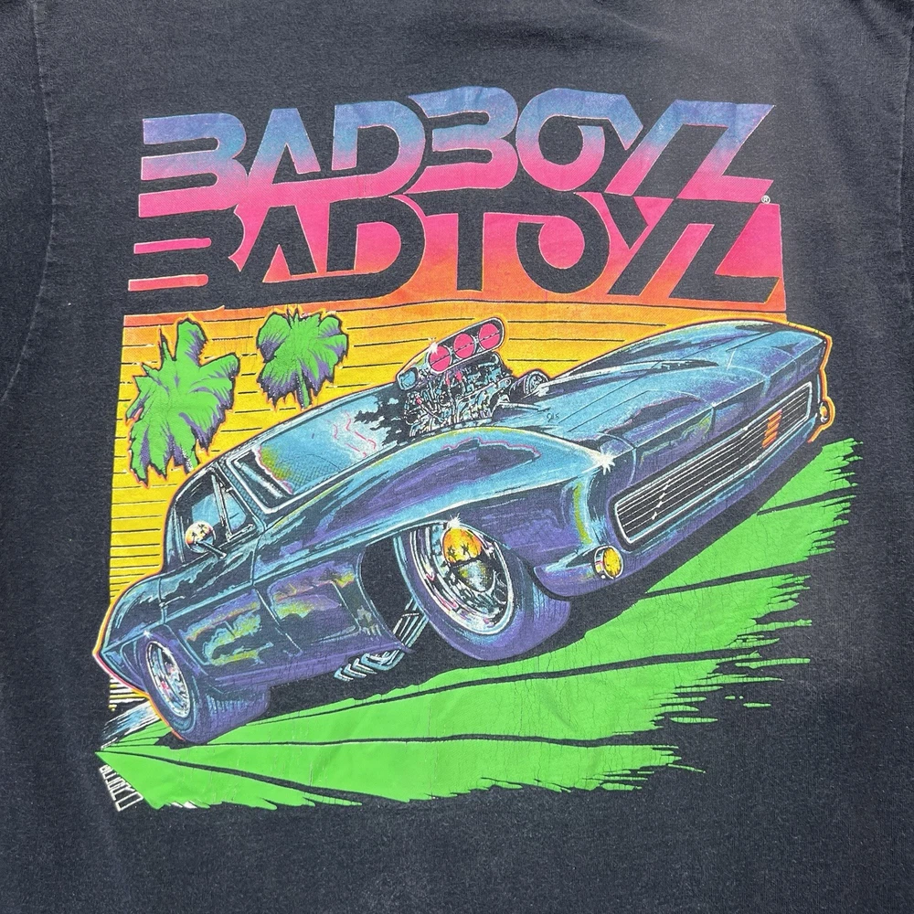 Vintage 80s Bad Boyz Bad Toyz Hot Rod Corvette Beach Shirt Size Large Faded