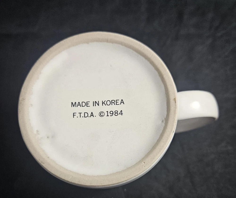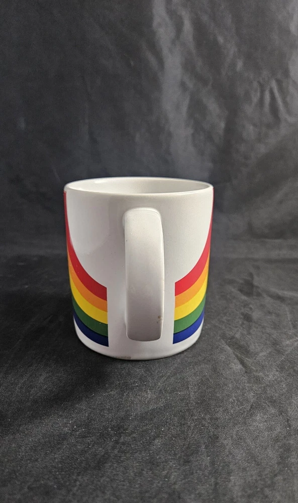 Vintage 80s Ceramic Rainbow 1984 FTDA, Made In Korea, Coffee Mug Tea Cup Very nice pre-owned mug in excellent condition. There are four available. Please see pictures for details.