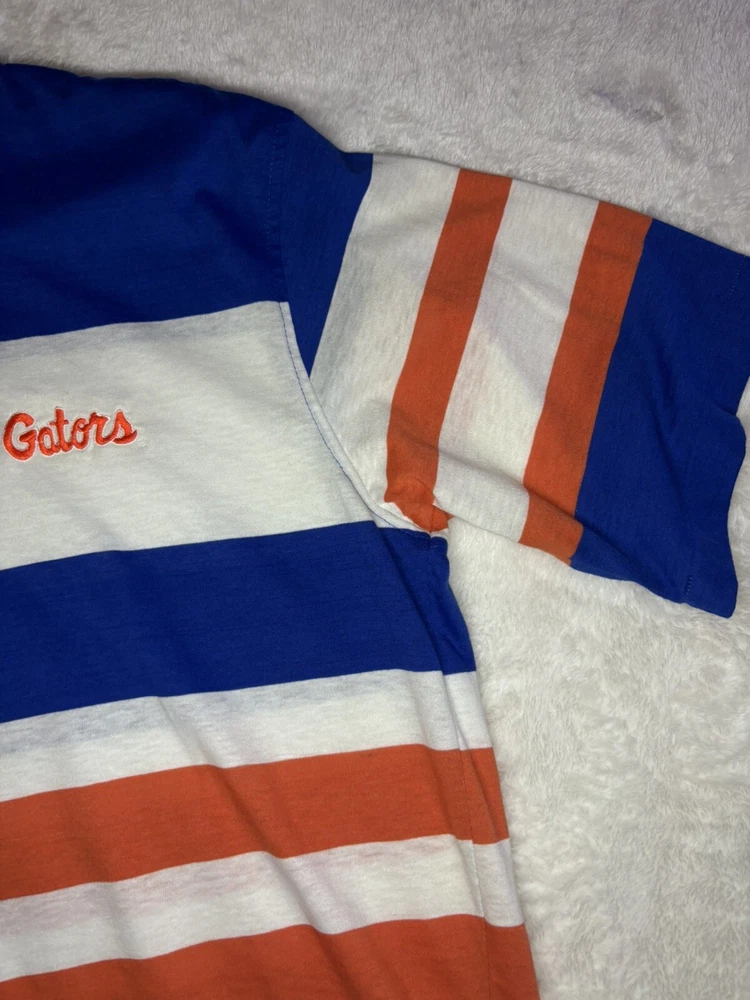 Show off your love for the Florida Gators with this vintage 80's Caro Sport polo shirt. This rare find is perfect for any fan of the team looking to add a unique piece to their collection. The shirt features the official team colors and logo, making it a great way to show support during the regular season. It's officially licensed and made in the United States, ensuring its quality and authenticity. Perfect for golf enthusiasts, this shirt is a must-have for any Florida Gators fan.