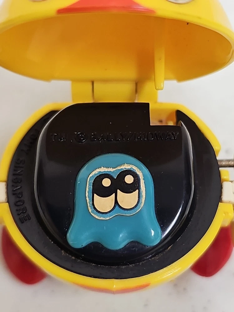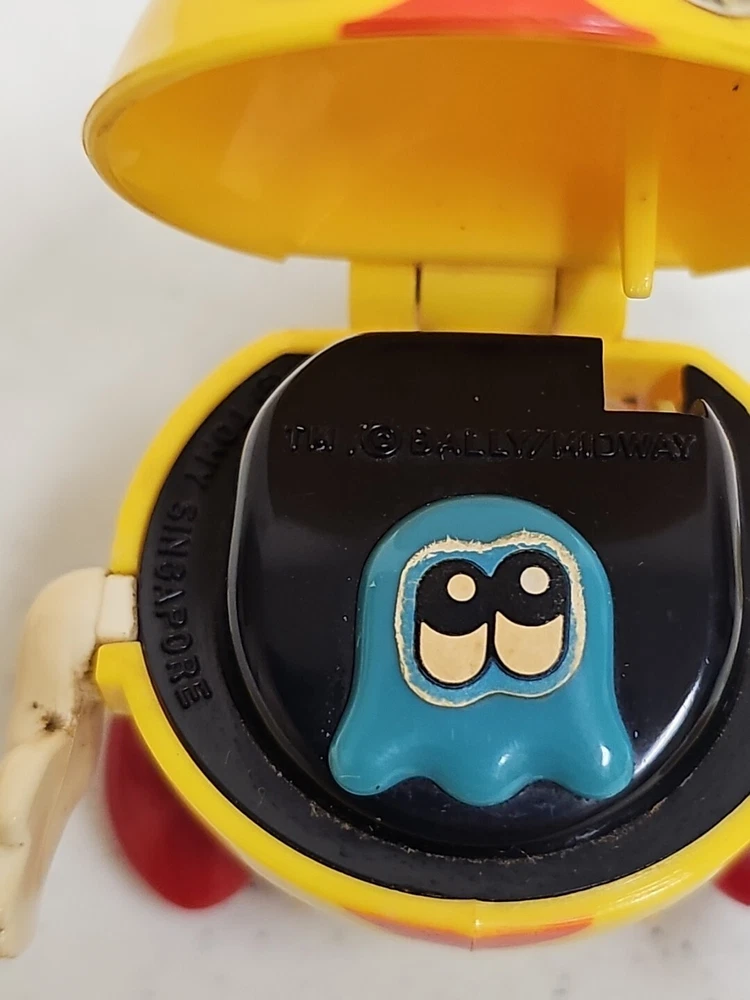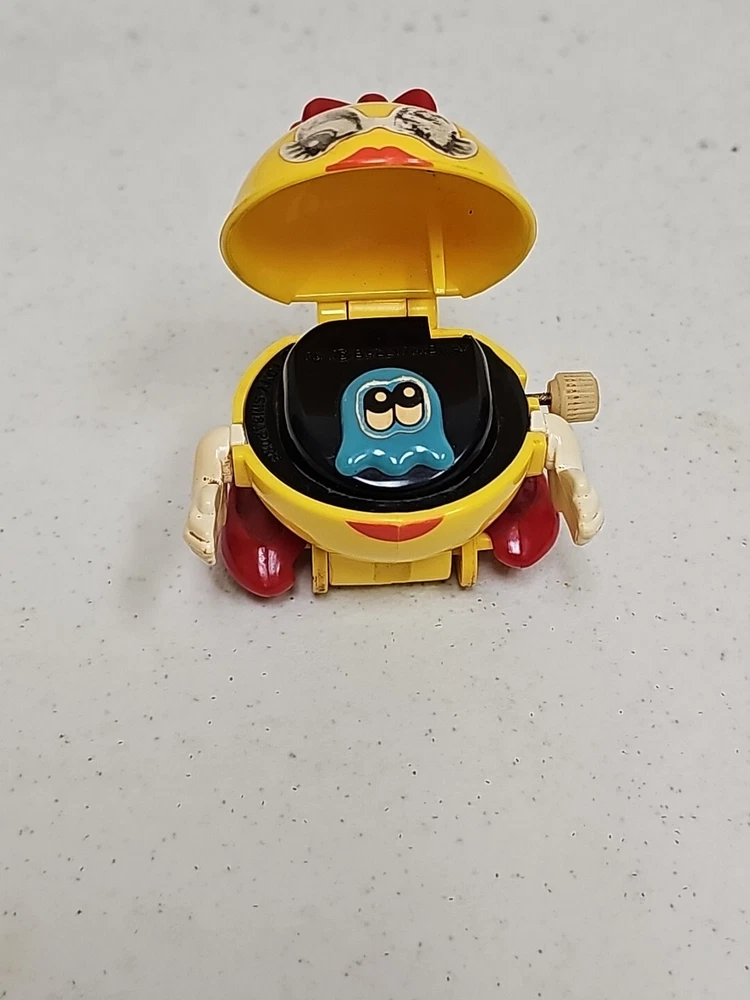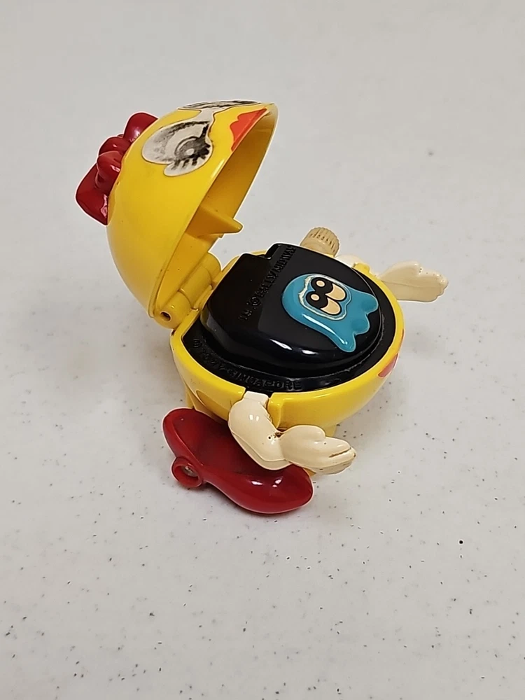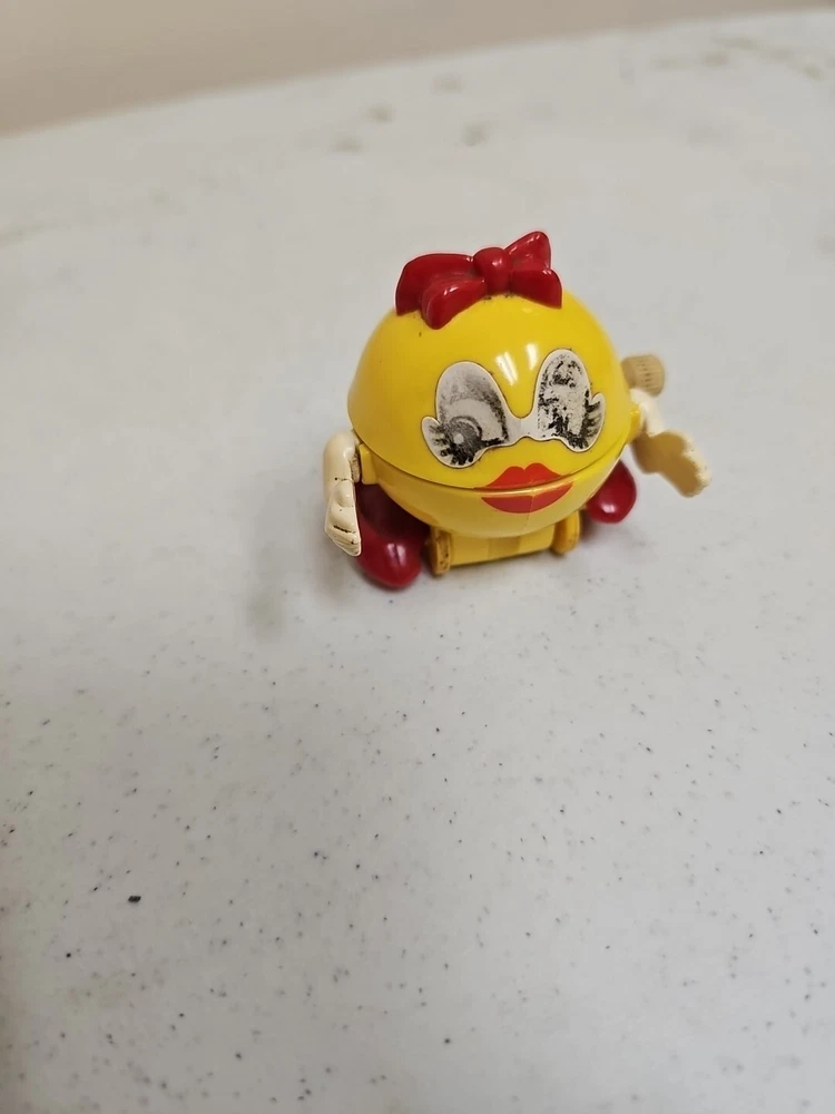 Embrace the nostalgic charm with this Vintage 80s Ms. PAC-MAN Wind Up Walking Toy. A classic treasure from TOMY, this delightful piece harks back to the era of quintessential arcade fun. Its timeless design is a homage to the iconic Pac Man character family, bringing a touch of retro gaming to your collection. Crafted in Taiwan, this wind-up toy stands as a testament to the era's craftsmanship. A must-have for collectors and enthusiasts, the item captures the spirit of vintage toys, making it a unique addition to any display of wind-up toys or video game memorabilia.