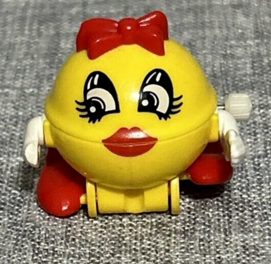 Vintage 80s Ms PAC-MAN Wind Up Walking Toy Video Game Figures Tomy Macao Works Pre-Owned - Please see Pictures for Details