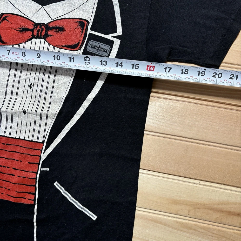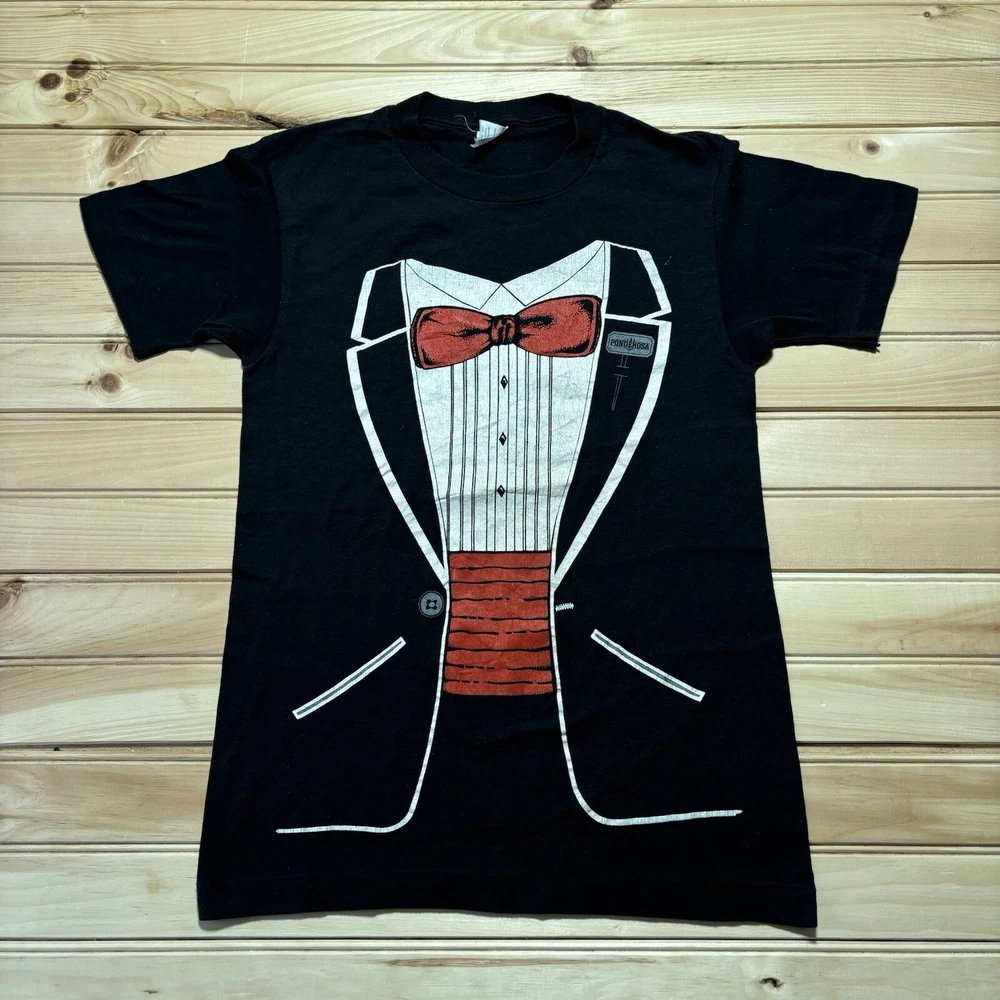 Vintage 80s Ponderosa Tuxedo Suit Red Bowtie Single Stitch Black Shirt Size M