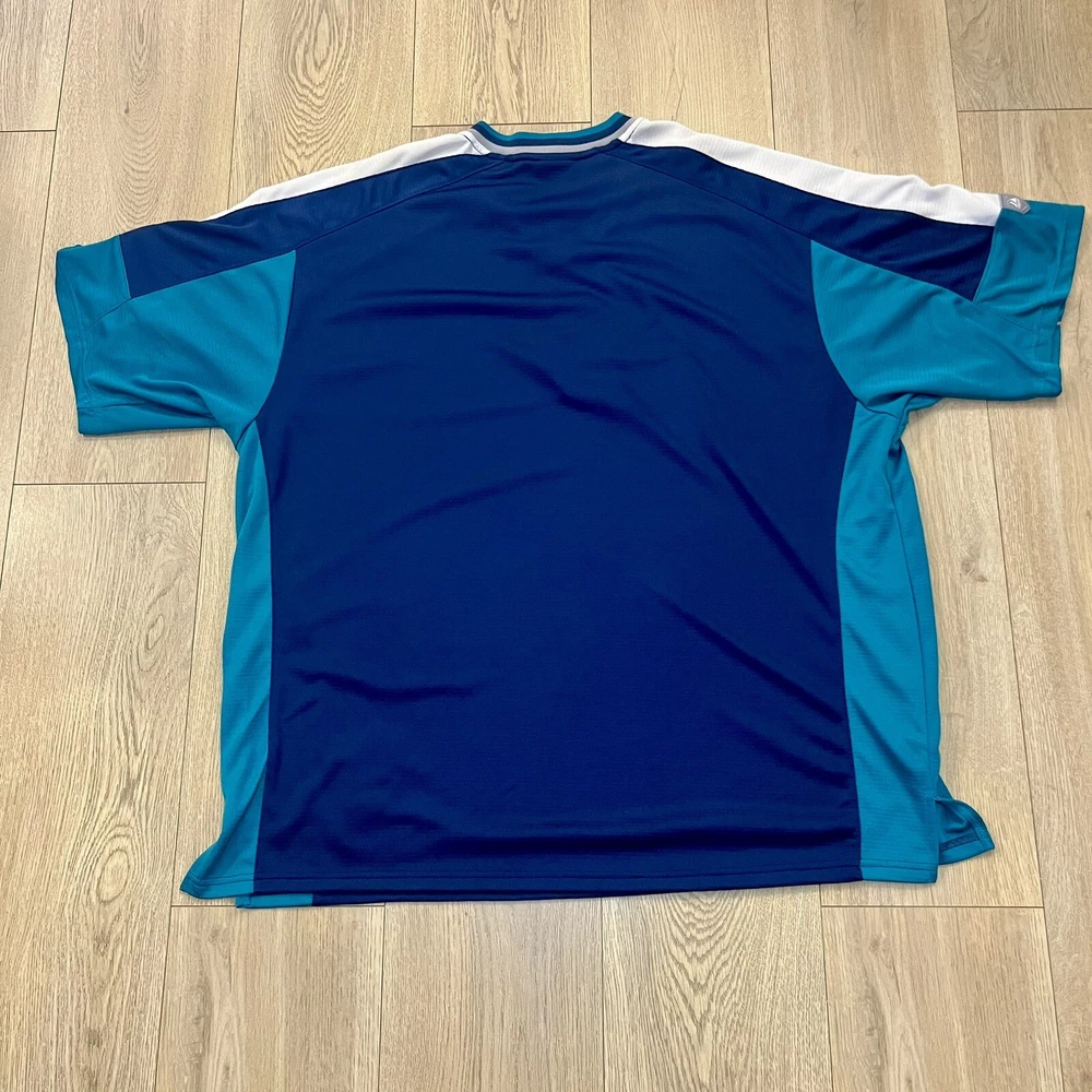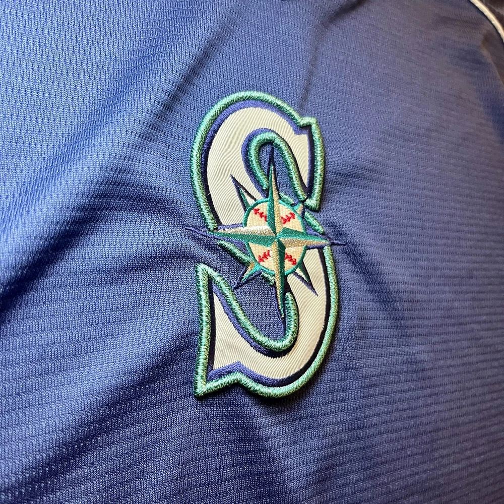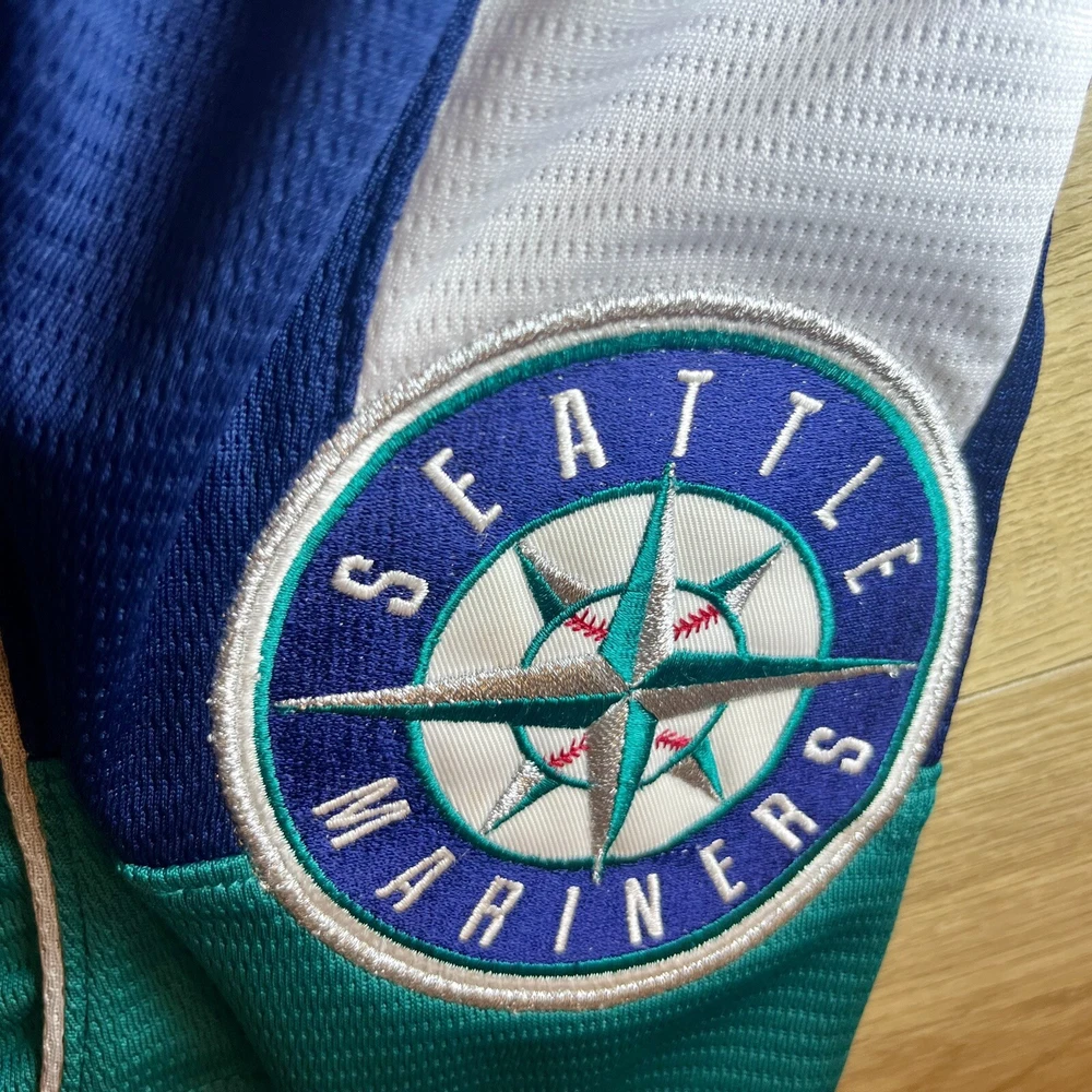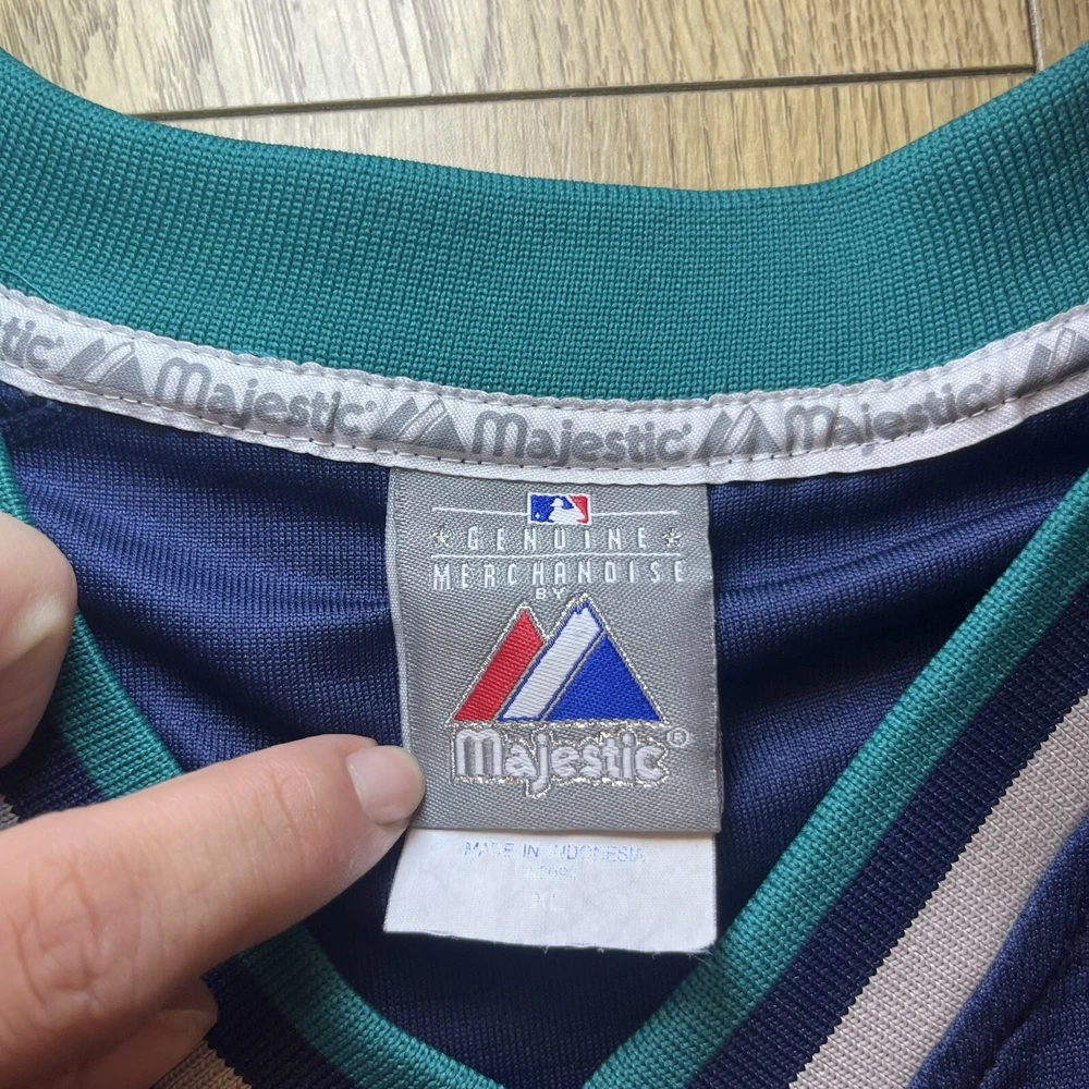 Show your support for the Seattle Mariners with this vintage 90s Majestic pullover jersey. Featuring the team's iconic blue color scheme, this unisex adult jersey is perfect for any baseball fan. The jersey is officially licensed by Major League Baseball (MLB) and is made in Indonesia with high-quality materials. With a 26-inch chest and a 21-inch collar to the bottom, this jersey is the perfect size for any fan. It's great for wearing to games or just out and about to show off your team spirit. The jersey has a capacity of 12 oz and features the Seattle Mariners team logo on the front. Get yours today and show your support for one of the most iconic teams in baseball history.