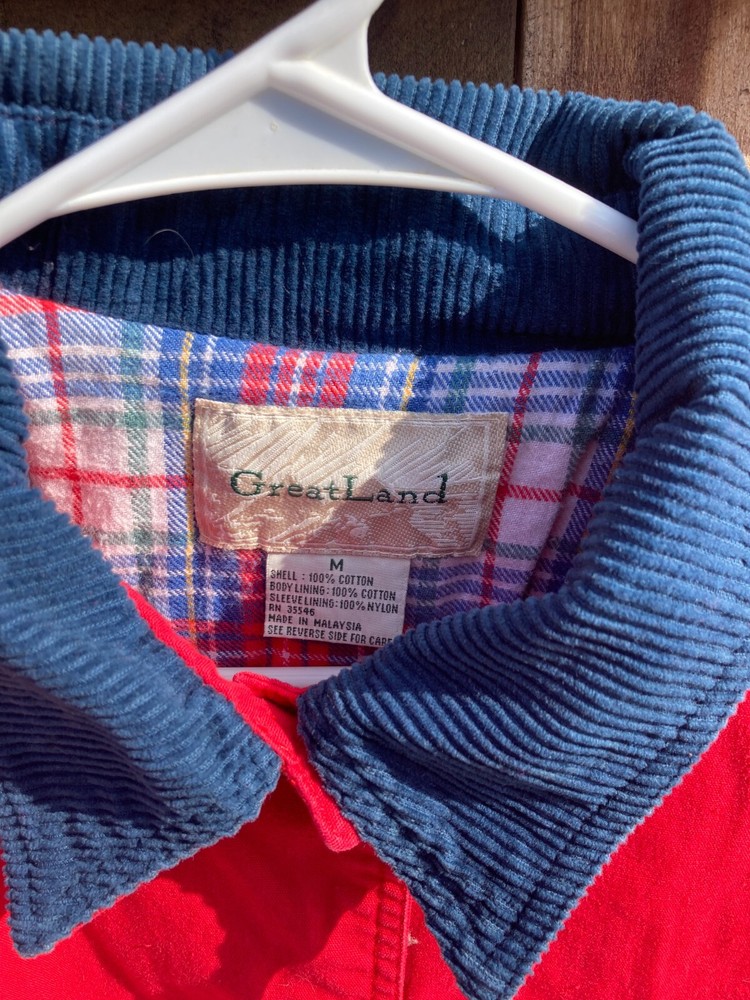 The Vintage 90s Greatland corduroy jacket is a stylish and unique addition to any wardrobe. This jacket features a button-up front and pockets, making it both functional and fashionable. The red color and corduroy fabric give it a classic 90s look, perfect for those who appreciate vintage style. With a size M and regular fit, this jacket is suitable for both men and women looking for a statement piece to add to their outerwear collection.