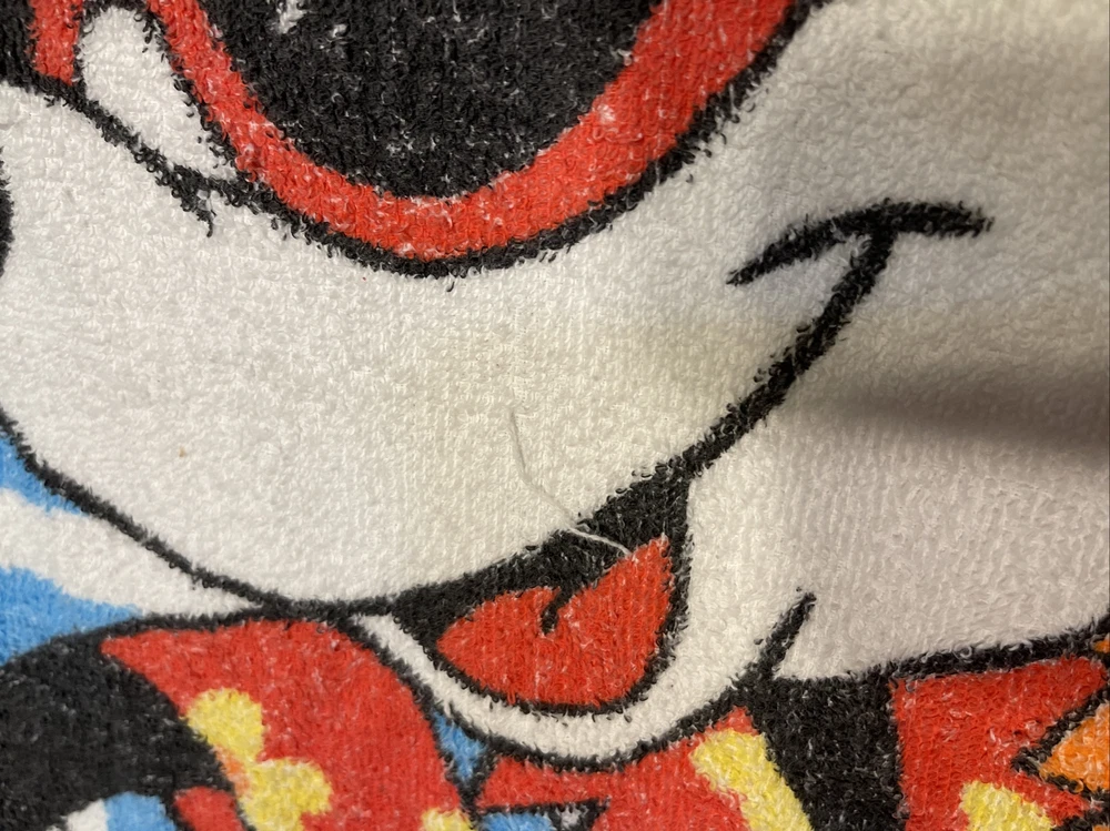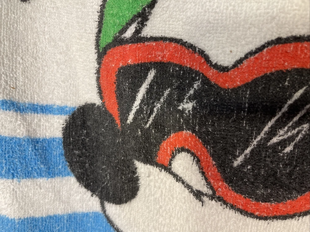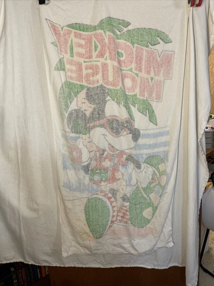 Just got this awesome vintage towel and it's even better in person! The retro Mickey design brings back so many childhood memories. The few tiny snags shown in photos are barely noticeable when it's spread out at the beach. Perfect for Disney fans who love nostalgic finds!