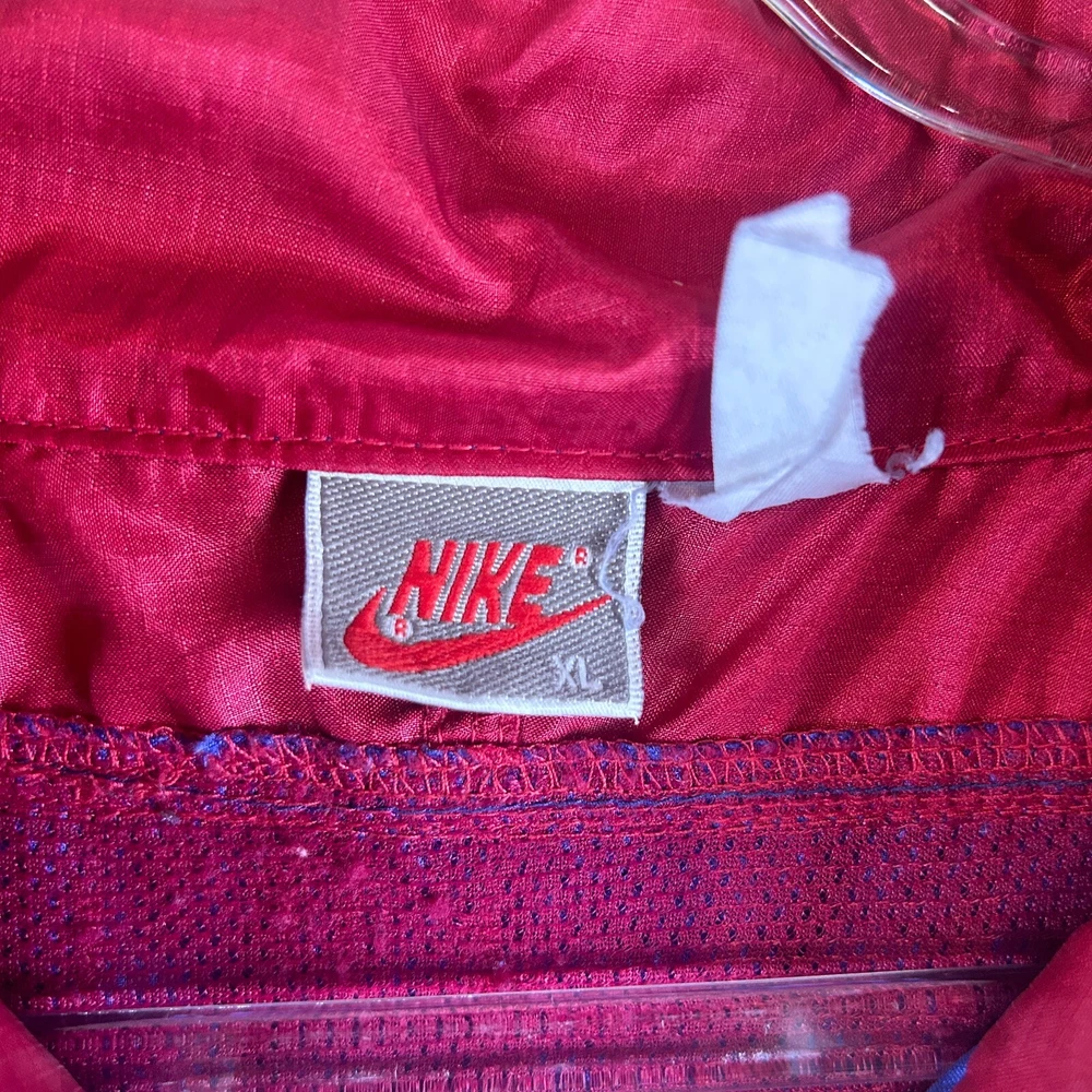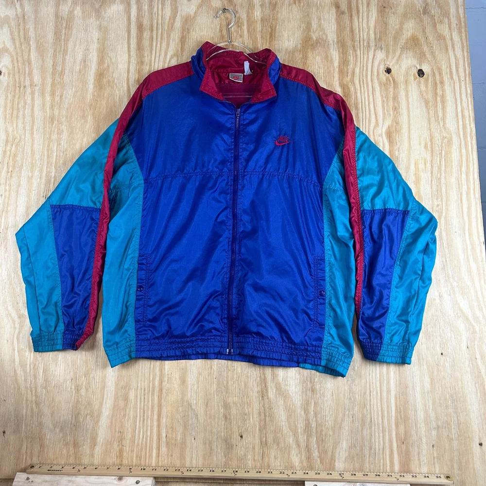 This vintage Nike windbreaker jacket is a must-have for any 90s fashion enthusiast. Featuring a colorful geometric pattern, embroidered Nike logo, and full zip closure, this jacket is perfect for travel, casual wear, or workwear. The lightweight and durable nylon material, along with the polyester insulation, makes it suitable for fall, spring, and winter seasons. The jacket is machine washable and has multiple pockets for convenience. Its long jacket/coat length and spread collar style provide a comfortable fit. This jacket is perfect for gym & training or running & jogging. Get your hands on this rare Nike Air product today! SKU:31-0002