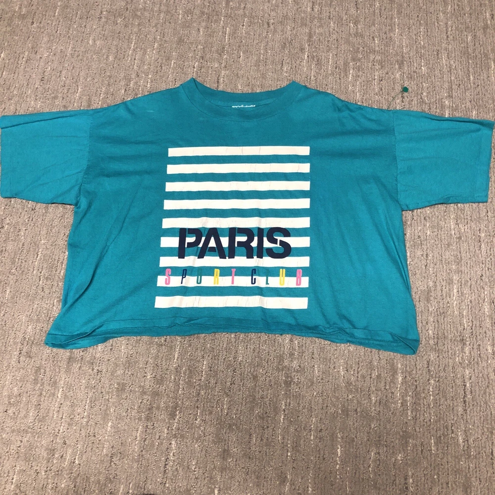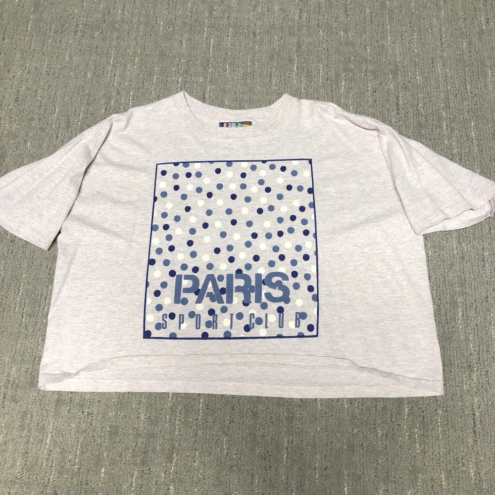 Vintage 90s Paris Sport Club Crop T-Shirt Bundle Women’s Single Stitch Boxy Preowned bundle of 4 t shirts. Marked one size, measurements are in pictures. The width is about an XL, and they’re cropped and meant to have a boxy oversized fit. Single stitch and made in USA. Please see pics and ask questions before purchasing Thanks!