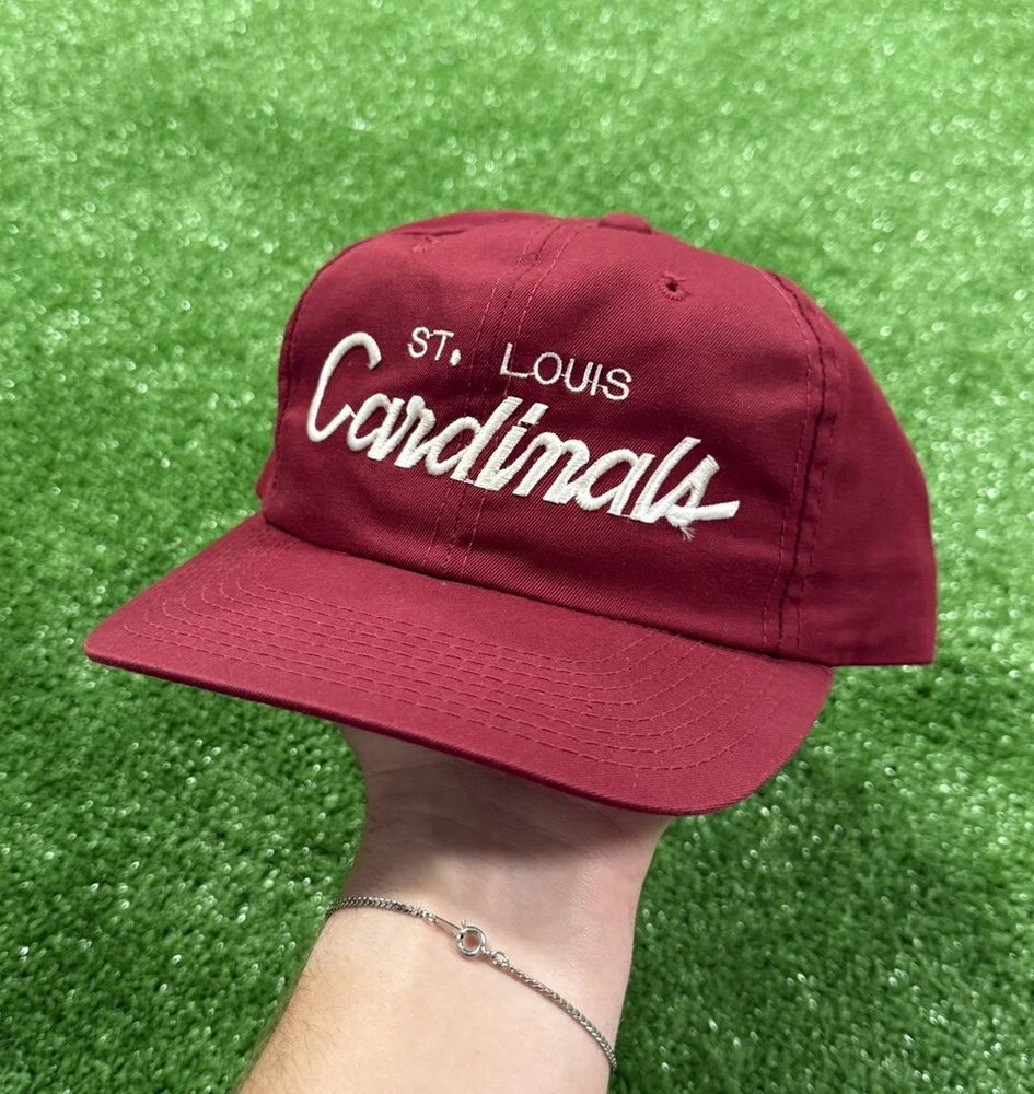 Show off your love for the St. Louis Cardinals with this vintage 90s Sports Specialties snapback cap. The burgundy wool fabric and adjustable size make it the perfect addition to any fan's collection. This officially licensed cap features the team's script logo and is perfect for wearing to games or just around town. Whether you're a die-hard fan or just looking for a stylish accessory, this cap is sure to impress.
