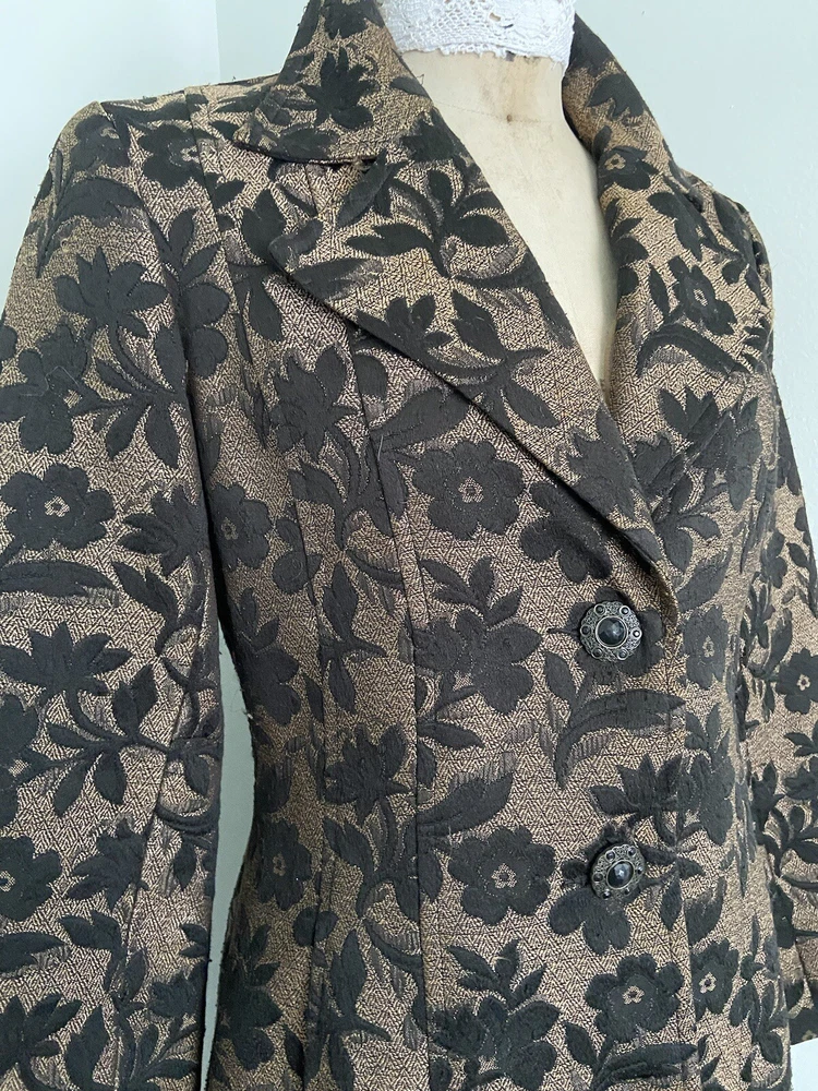 No tag. There is some wear to the fabric which means there are some loose threads but no holes.