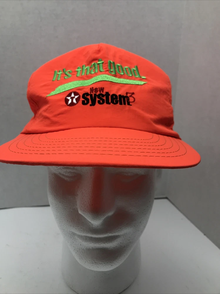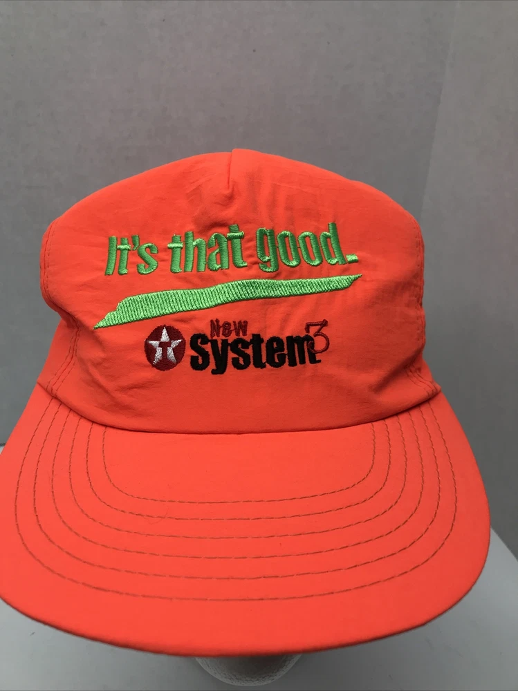 Vintage 90s Texaco Snapback Hat “It’s That Good.” Orange Nylon Made In USA. Condition is "Pre-owned". Shipped with USPS First Class. This hat appears never worn see photos Nylon thin hat Made in USA See photos to make your purchase decision Checkout my eBay store for more great items for purchase https://www.ebay.com/str/savyva SALES TAX:Virginia residents 6% sales tax added. Sales tax added per state residents requirements based on location. MISSION STATEMENT: To provide vintage, gentle used, and new items at a fair price. We will never mis-represent an item, so please contact us before leaving negative feedback *RETURNS: There's no returns unless theres an error in my listing and its reported to me within 24 hours of receiving the item. Returns are not accepted for sizing, please refer to measurements provided or I'd be happy to provide measurements. NEW ITEMS: No manufacturer warranties will apply to new or used item(s). Color Disclaimer Actual colors may vary. This is due to the fact that every computer monitor has a different capability to display colors and that everyone sees these colors differently. We try to edit our photos to show the samples as life-like as possible, but please understand the actual color may vary slightly from your monitor. We cannot guarantee that the color you see accurately portrays the true color of the product.
