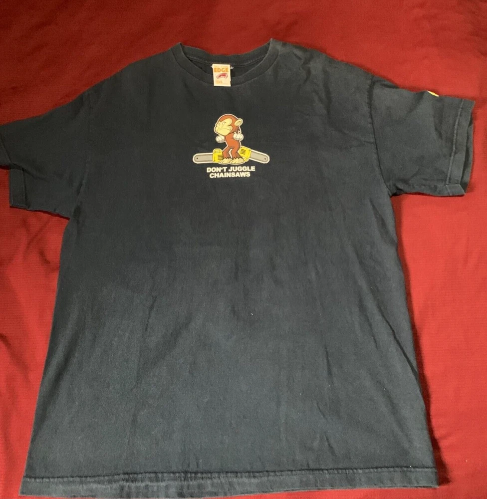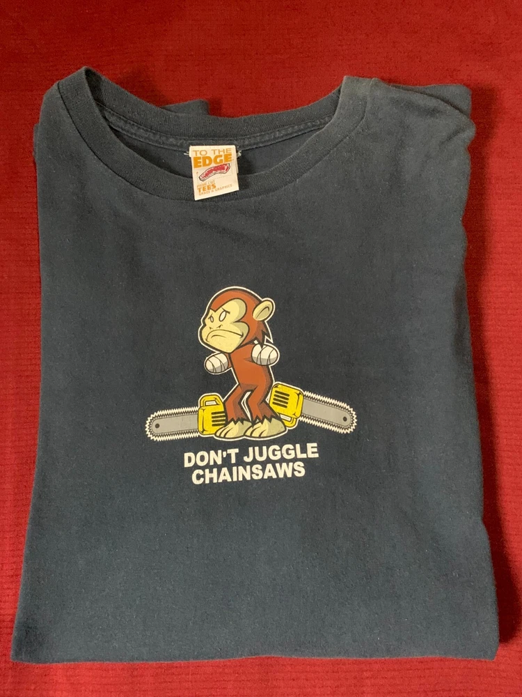 Vintage 90s To The Edge Prime Cut Tees Don't Juggle Chainsaws’ Monkey Size XL In great condition, no flaws. funny shirt, great for anyone who likes vintage comedy shirts. Reach out to me if you have any question. Thank you :)