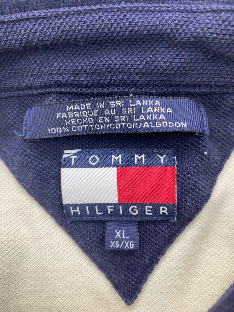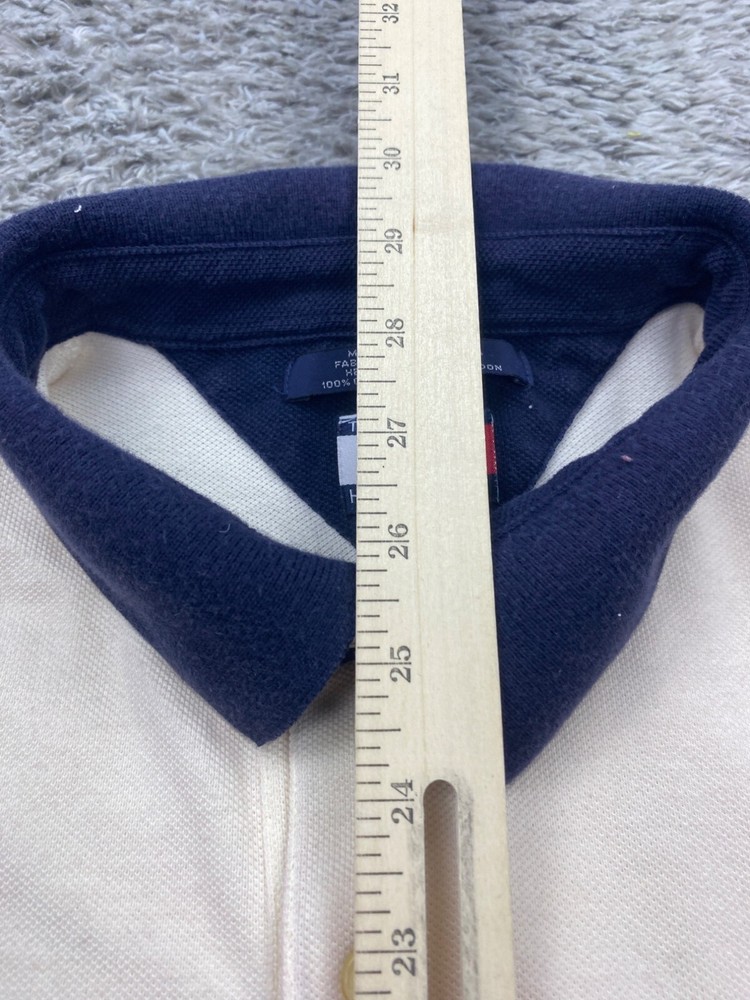 $ 5.16VTG Tommy Hilfiger Embroidered SPELL OUT Striped Polo S/S 2XL XXL Y2K Retro