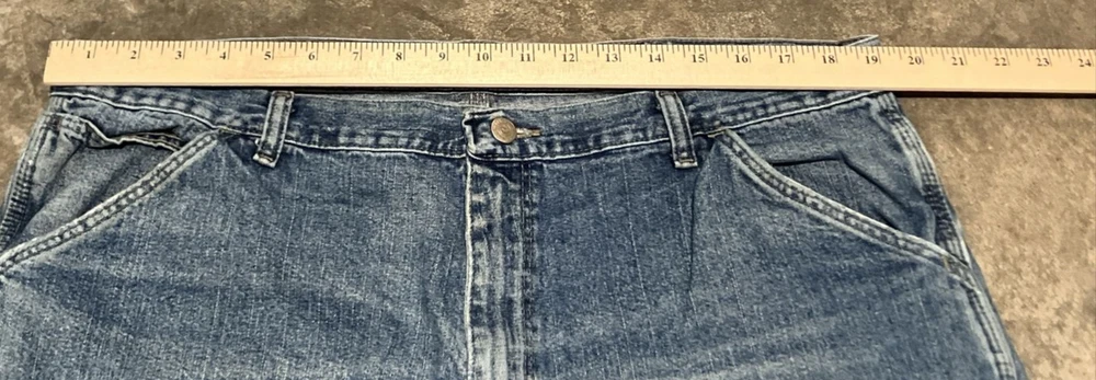 Vintage Wrangler Carpenter Jeans 38x30 Blue Denim Utility Baggy Skater Y2K 90s Pre-owned. See photos for condition details and measurements. To upcycle, I reuse shipping material as often as possible. Buy more from my store and save on shipping.