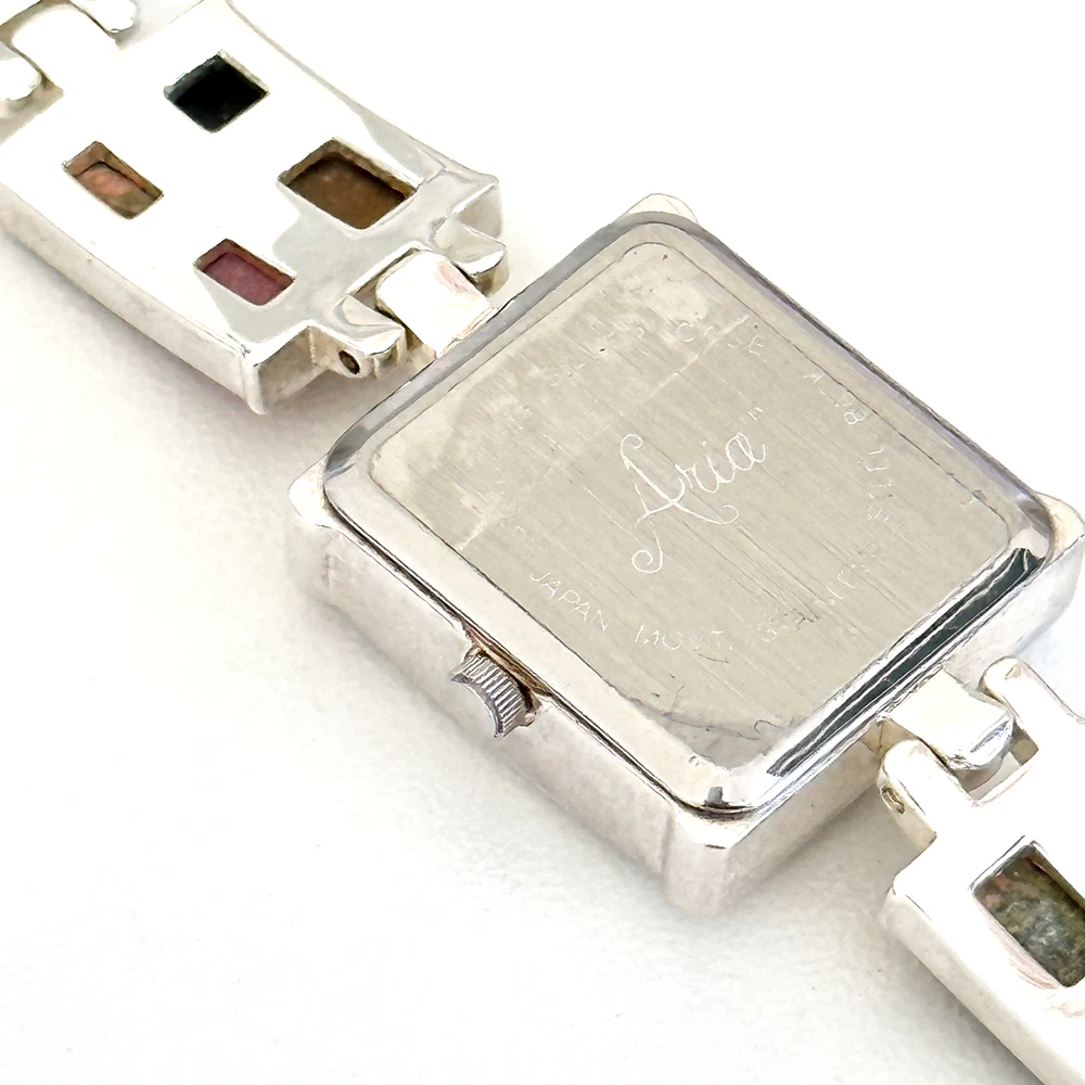 Vintage 925 Sterling Silver Aria Multi Gemstone Watch 7" Length: 7" Weight: 46.4 grams Signed: "OIT 925" on the chain part and "Aria Stainess Steel" on the clock part, Please note, needs a new battery. Otherwise in very good vintage condition. - Fast shipping, I ship the same or next business day! I also combine shipping. - Thank you so much for shopping with me and please check out my other jewelry listings, I post new pieces daily!