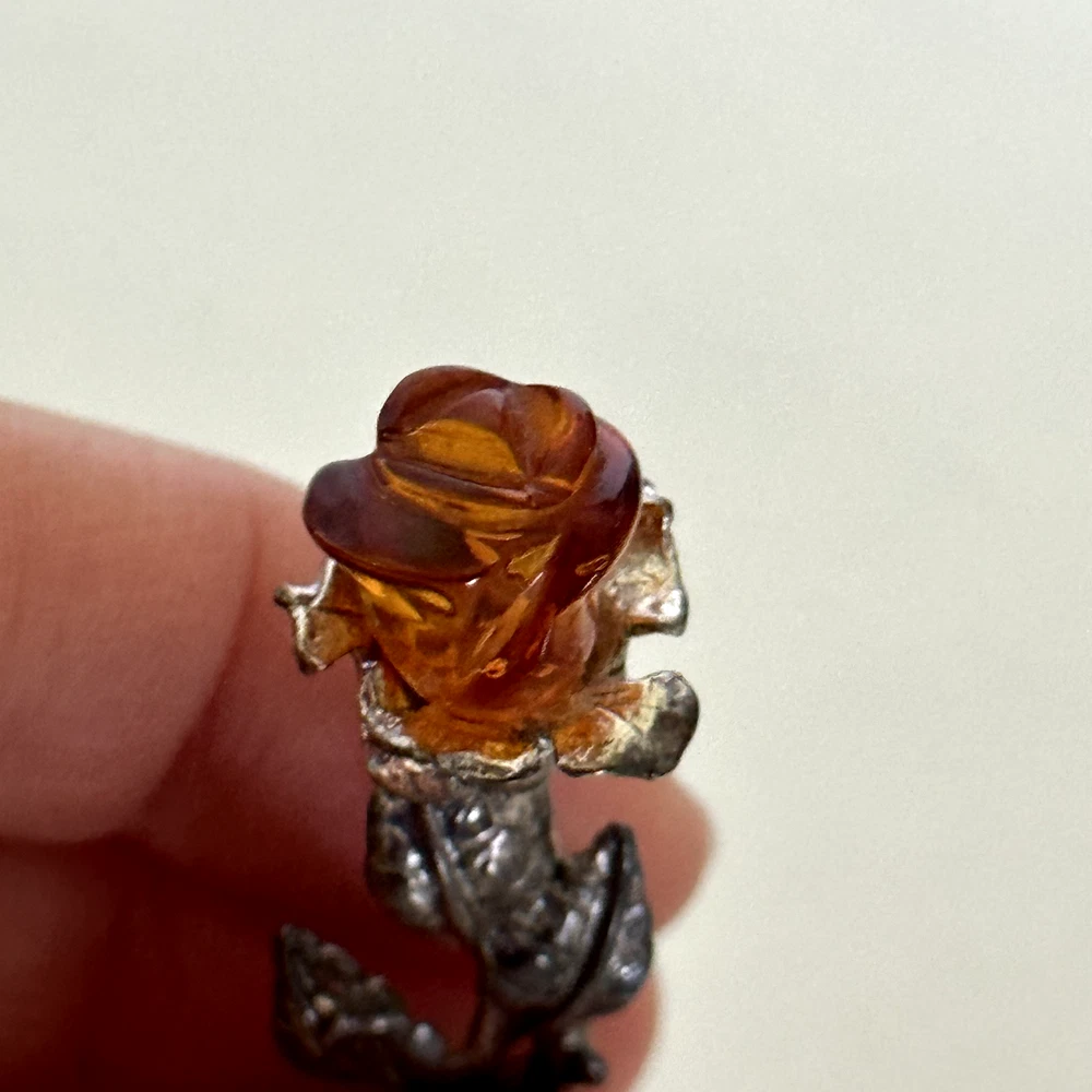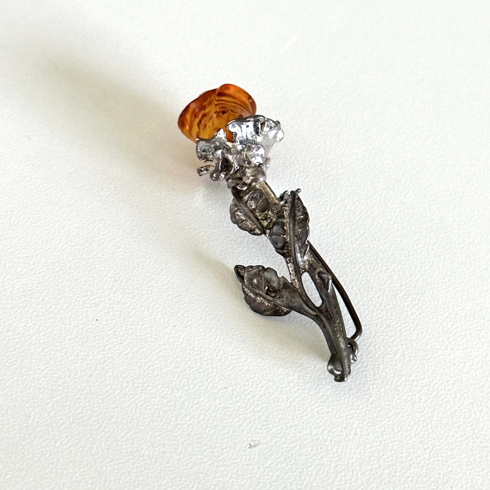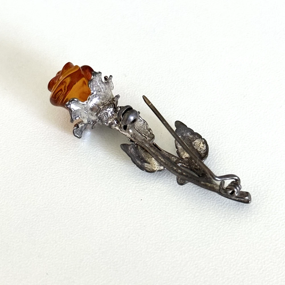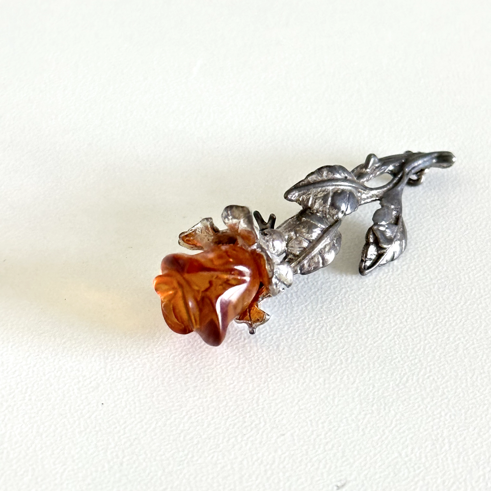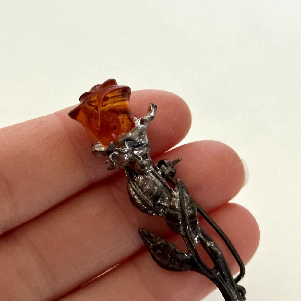 Lovely Vintage 925 Sterling Silver Baltic Amber Carved Rose Flower Brooch Pin Measurements: Just about 2" x 3/4" Weight: 5.4 grams Tested for sterling silver. Very good vintage condition. Shows patina. Pin part works perfectly. - Fast shipping, I ship the same or next business day! I also combine shipping. - Thank you so much for shopping with me and please check out my other jewelry listings, I post new pieces daily!