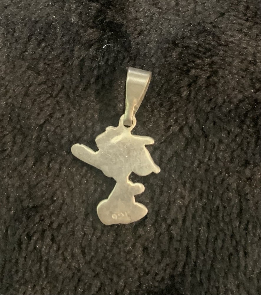 This vintage 925 sterling silver pendant features a playful pose of Snoopy, making it a charming addition to any jewelry collection. The pendant is stackable and has a sleek silver color, perfect for any unisex adult. It is a reproduction of an antique piece and has no gemstones or diamonds. The pendant is made of metal and has an unknown base metal, but its purity is 925. The pendant is perfect for those who love vintage jewelry and appreciate the playful designs of the past.