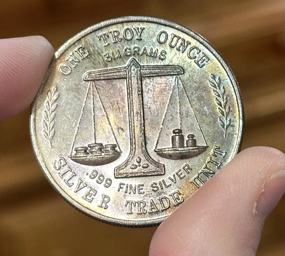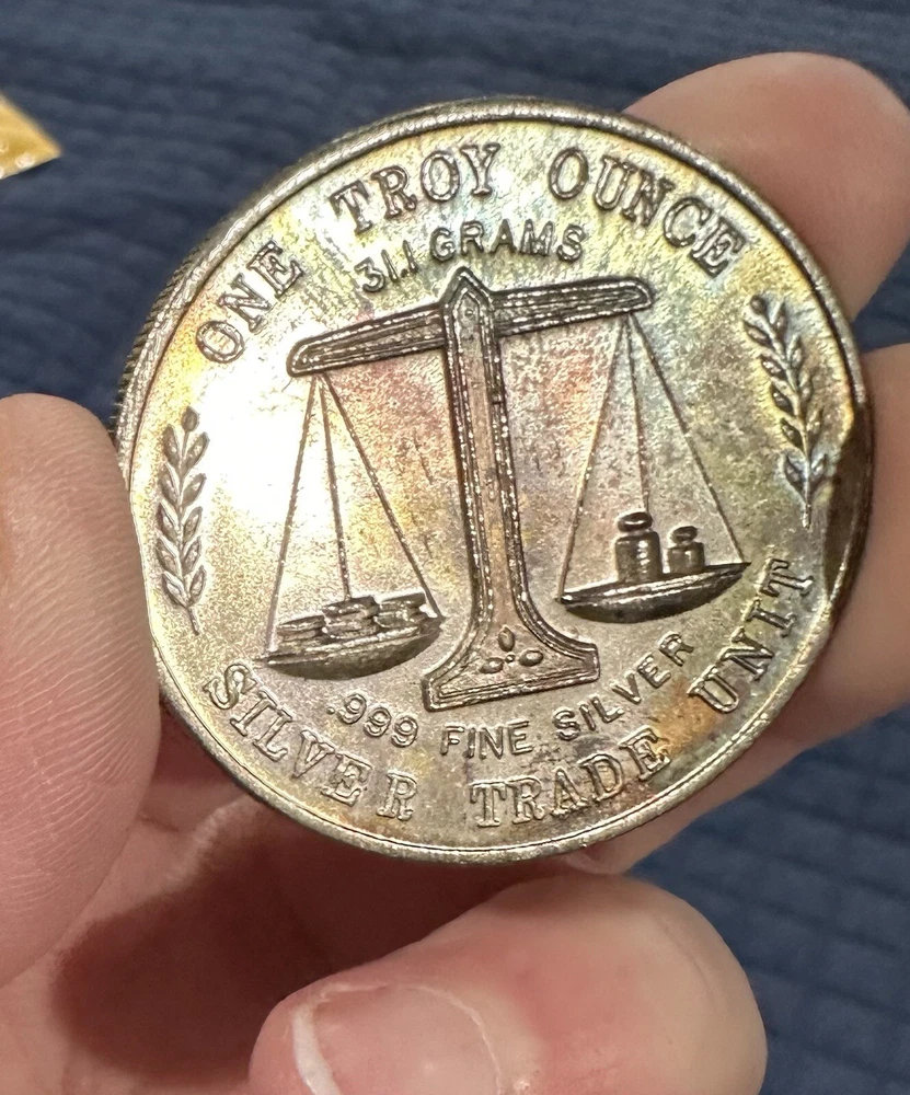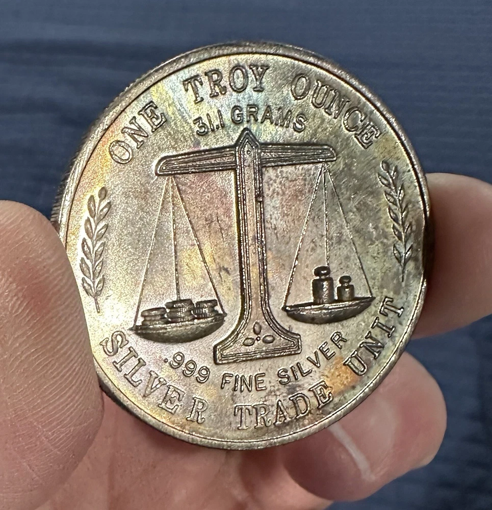 Composition:SilverCountry/Region of Manufacture:United StatesFineness:0.999Precious Metal Content per Unit:1 ozShape:RoundBrand/Mint:SILVER TRADE UNITYear:VintagePrecious Metal Content:1 ozTotal Precious Metal Content:1 oz