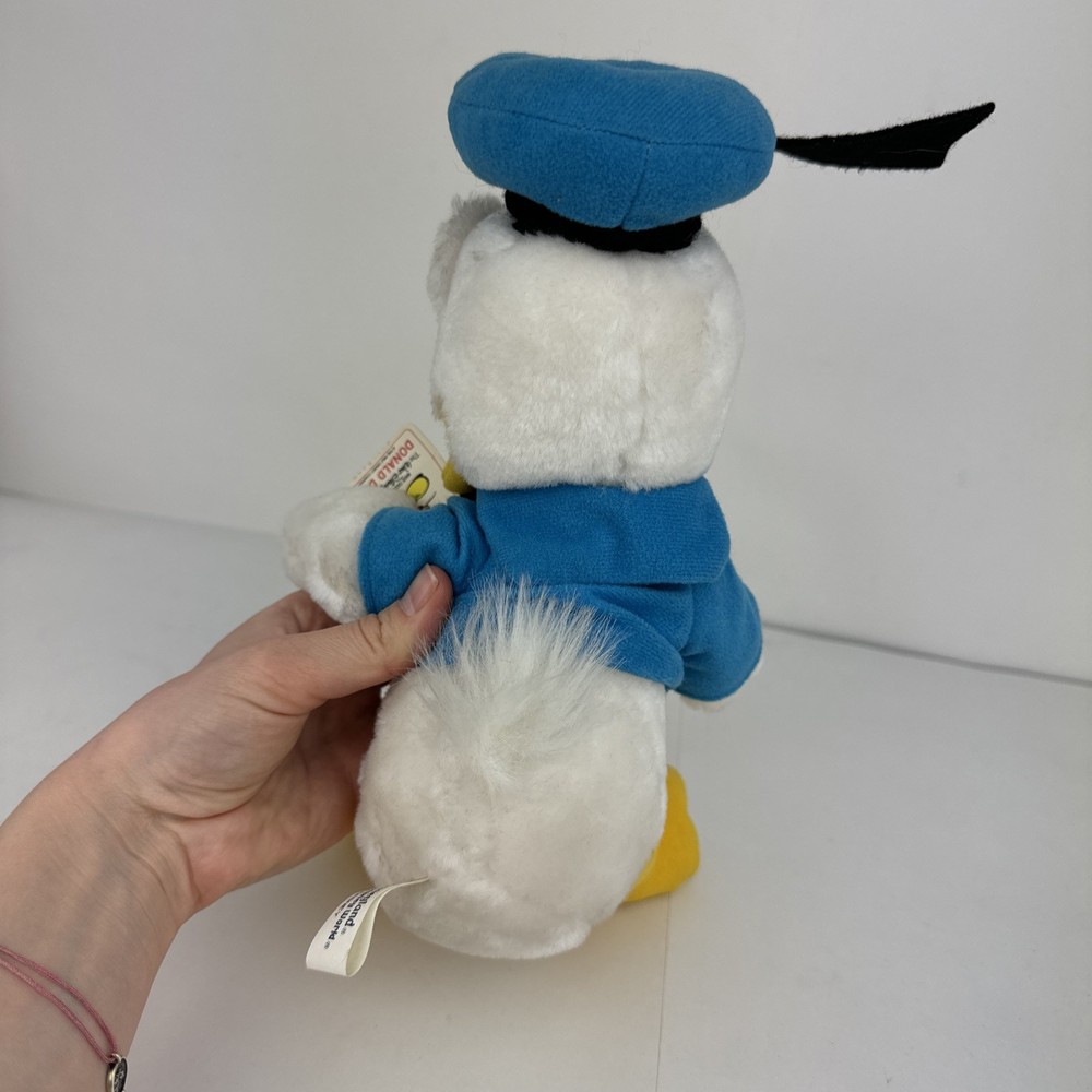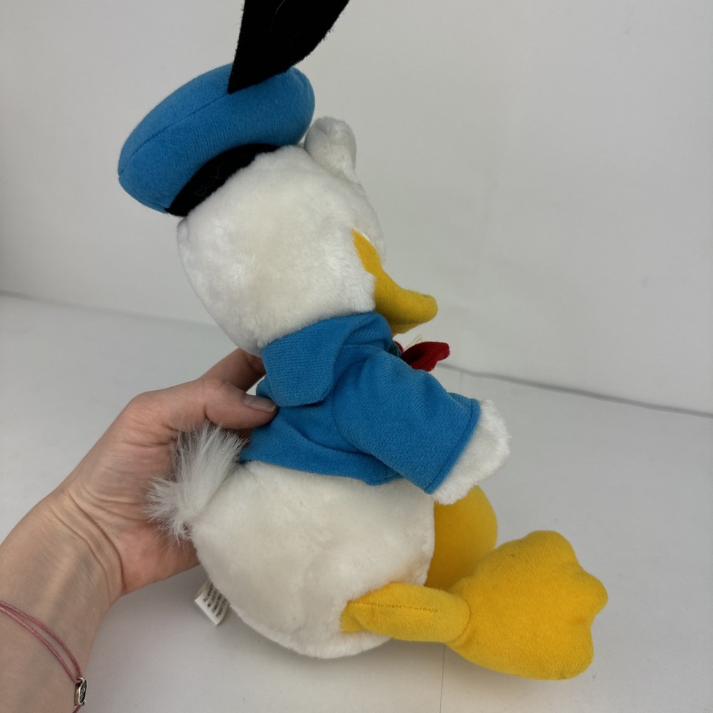 This is a brand new vintage Walt Disney Donald Duck plush toy with tag. The toy was made in Korea, Republic of and features the beloved character from the Disney franchise. It is a collectible item that would make a great addition to any Disneyana collection. The plush toy is contemporary and can be used as a decorative piece or as a toy for children.