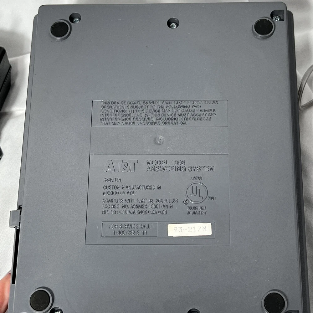 Used AT&T model 1305 answering machine. Comes with cables and cords
