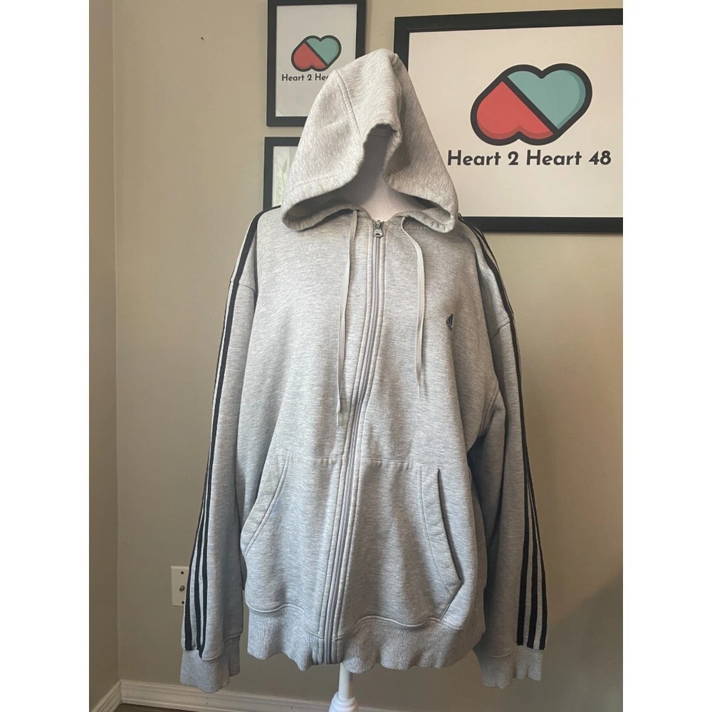 Vintage Adidas Hoodie Full Zip Men's XL Gray Soft Fleece Black 3 Stripes adidas logo Size: XL Color: Gray with Black three adidas stripes Measurements: Chest: 53", Sleeve: 24", Length: 27" (approx.) Material: 70% Cotton and 30% Polyester Excellent Pre-Loved Condition. Actual item Photos. Don't hesitate to contact us before purchasing if you have questions about the item's condition and shipping cost. If you receive an item with a noticeable flaw not shown in the photos, please contact us before leaving feedback. We strive to describe all items thoroughly and accurately. Please ask any questions you have before offering or buying. We will do our best to return your messages within 24 hours. Happy Shopping!