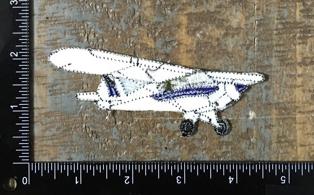 Vintage Aircraft Aviation Plane Embroidered Iron-On Patch in White and Blue