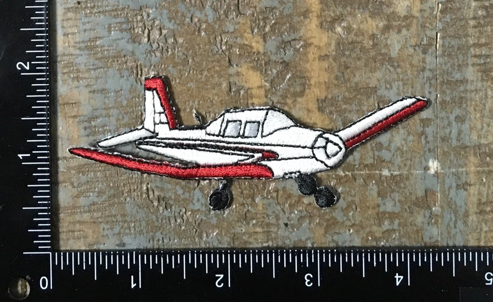 Vintage Airplane Aircraft Aviation Embroidered Iron-On Patch White/Red