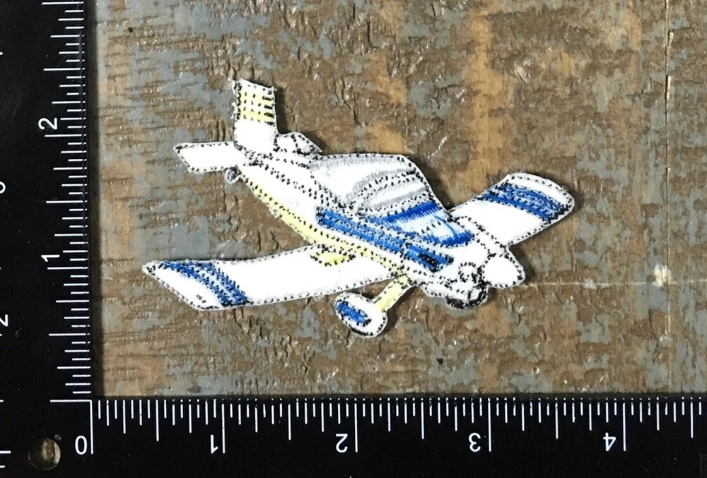 Vintage Airplane Aircraft Aviation Plane Embroidered Iron-On Patch White/Blue