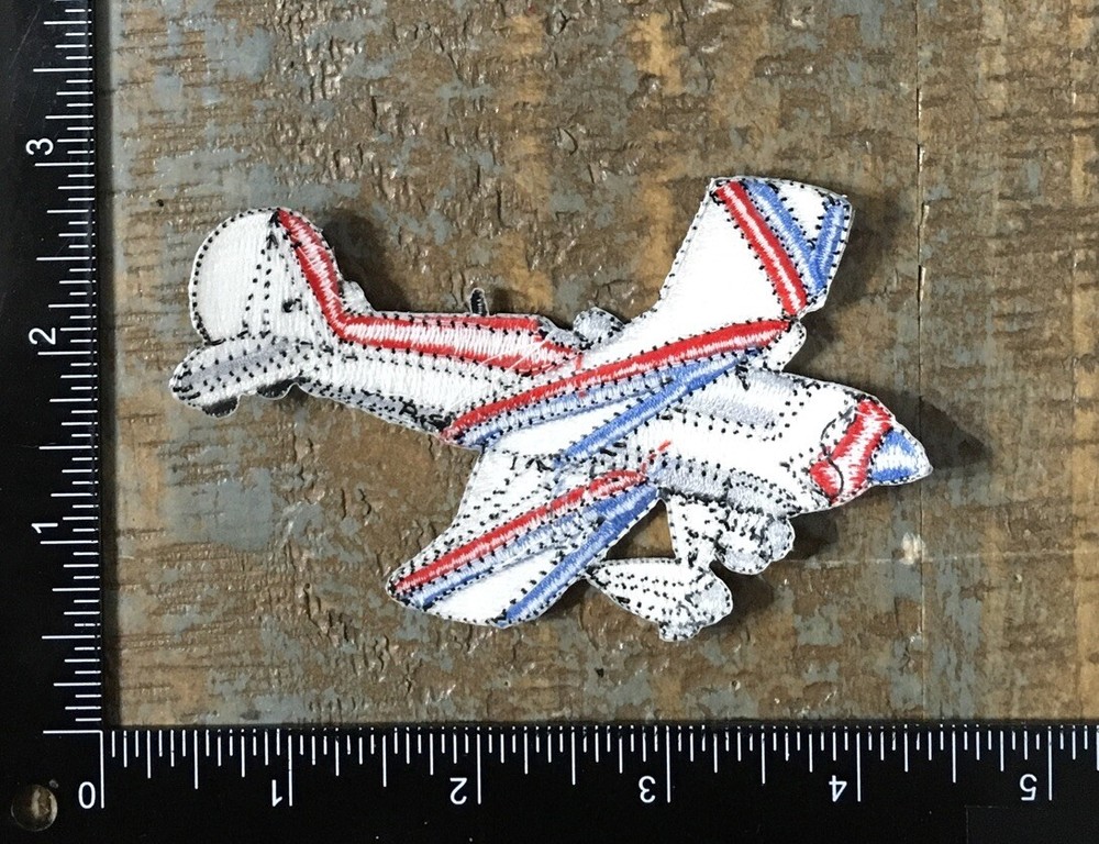 Vintage Airplane Aviation Embroidered Iron-On Patch in White Blue Red