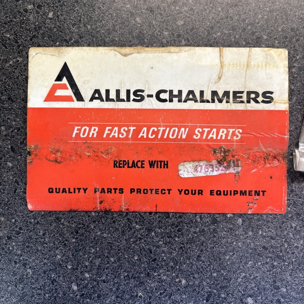 Vintage Allis Chalmers Tractor Lot NOS parts And Battery Decal used. Nice items for a shelf display