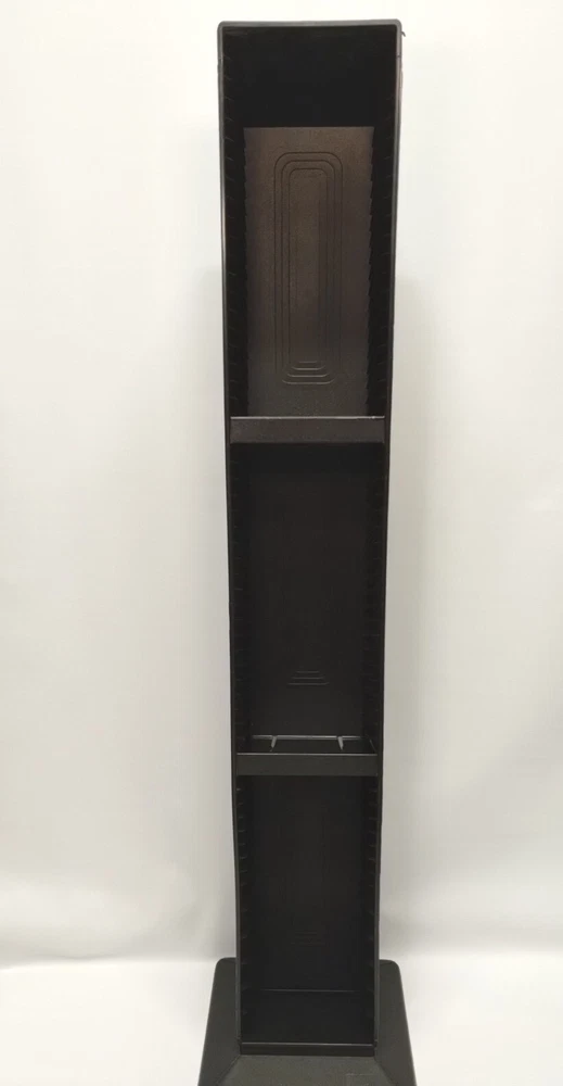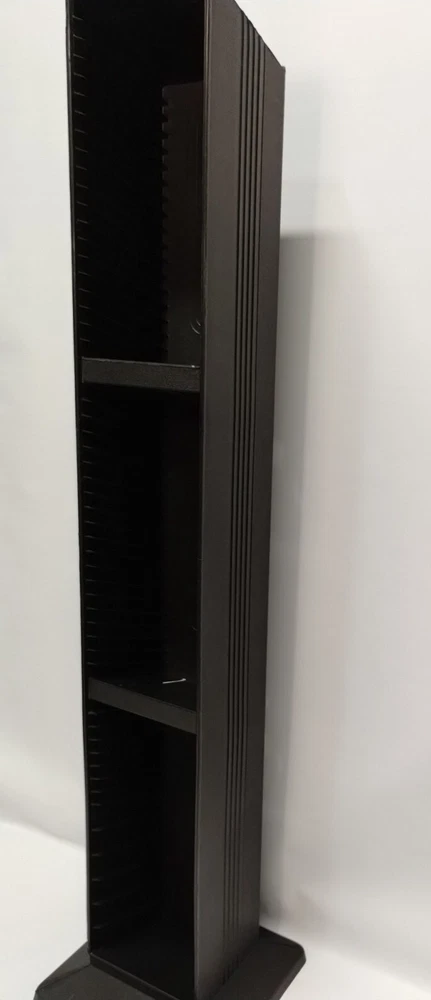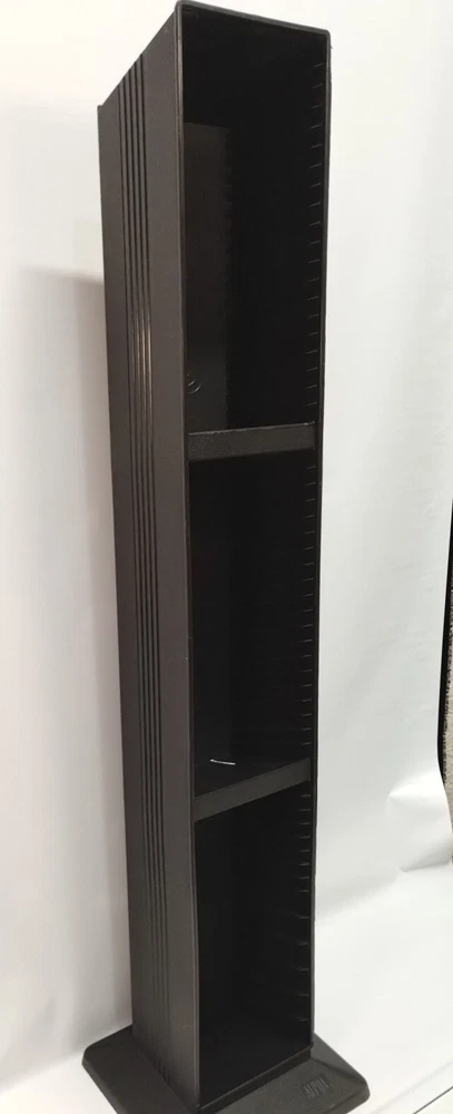 This vintage Alpha compact disk storage tower is the perfect addition to any music lover's collection. With a capacity to hold up to 60 C.D.'s, this black rigid plastic rack is durable and perfect for organizing your audio media accessories. The Alpha brand is known for its quality and this storage tower is no exception. Made in the United States, it features a sleek design that will complement any decor. Whether you're looking to organize your CD, DVD, or Blu-ray discs, this tower is a great choice. Get your hands on this must-have item for your music collection today!