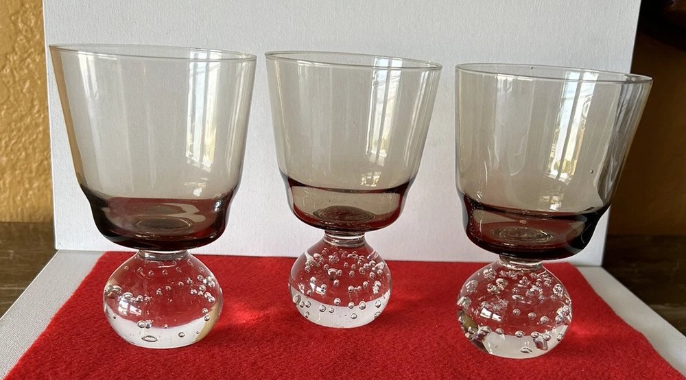 Vintage Amber Cocktail Glass Bubble Base Cordials Set of 3. Liquors Glass Pre owned but in good condition Set of 3 Please see pictures for measurements and details