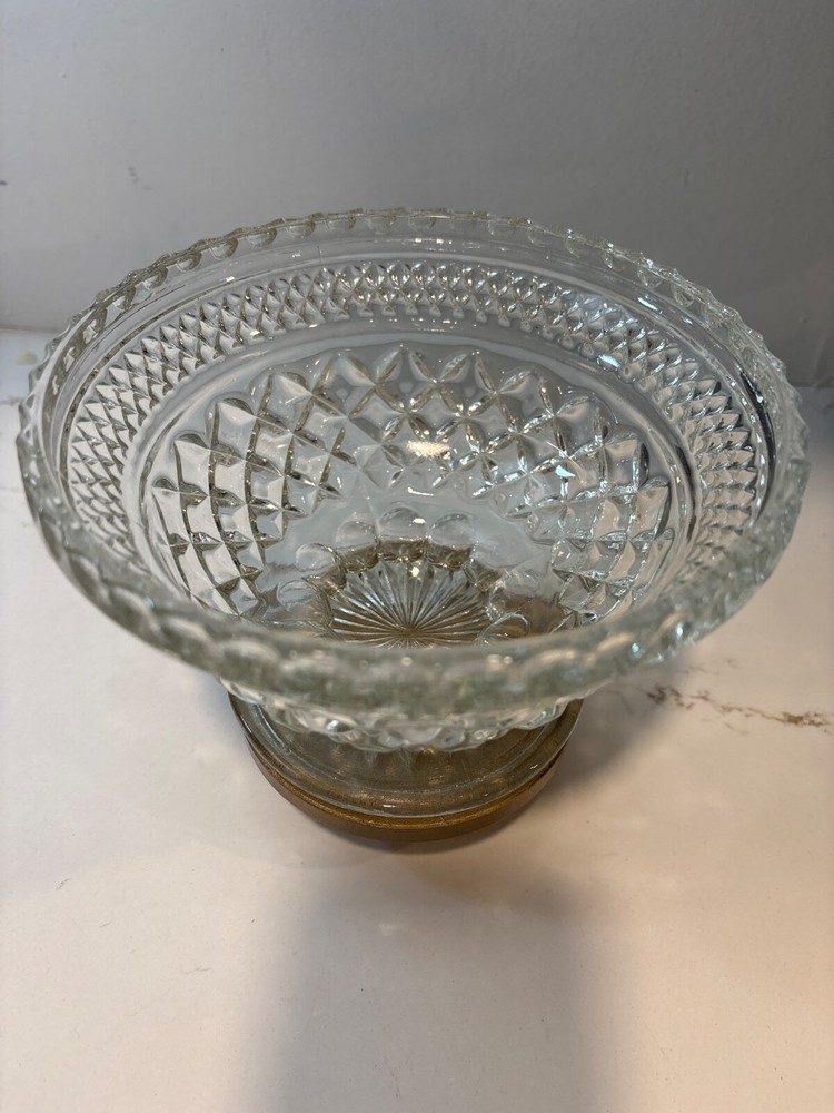 Elevate your display with the Vintage Anchor Hocking Wexford Cut Glass Crystal Candy Dish, a stunning piece that exudes classic elegance. The clear glass material showcases a intricate cut glass design, reflecting light beautifully to catch the eye of any guest or collector. Expertly crafted from high-quality glass, this candy dish is a testament to the timeless production style of Anchor Hocking's Wexford product line. Whether used to serve sweets or as a standalone display item, it adds a touch of sophistication to any setting. It's a must-have for those who appreciate the beauty of cut glass crystal in their home decor.