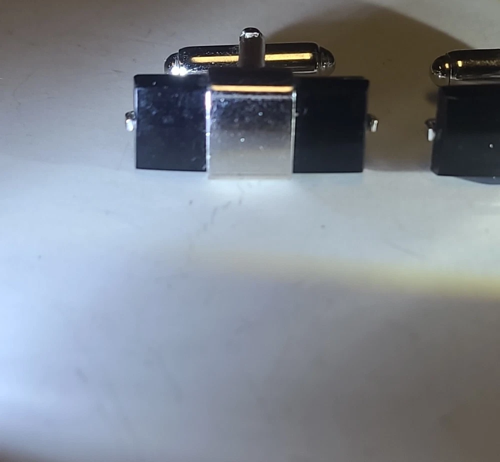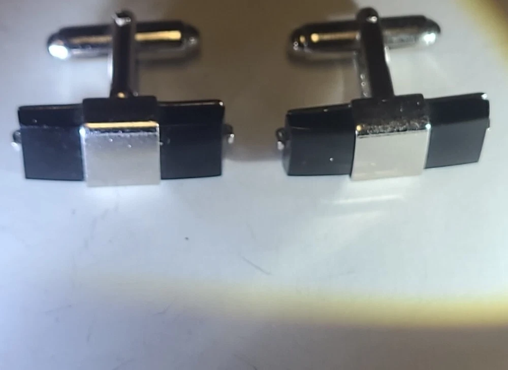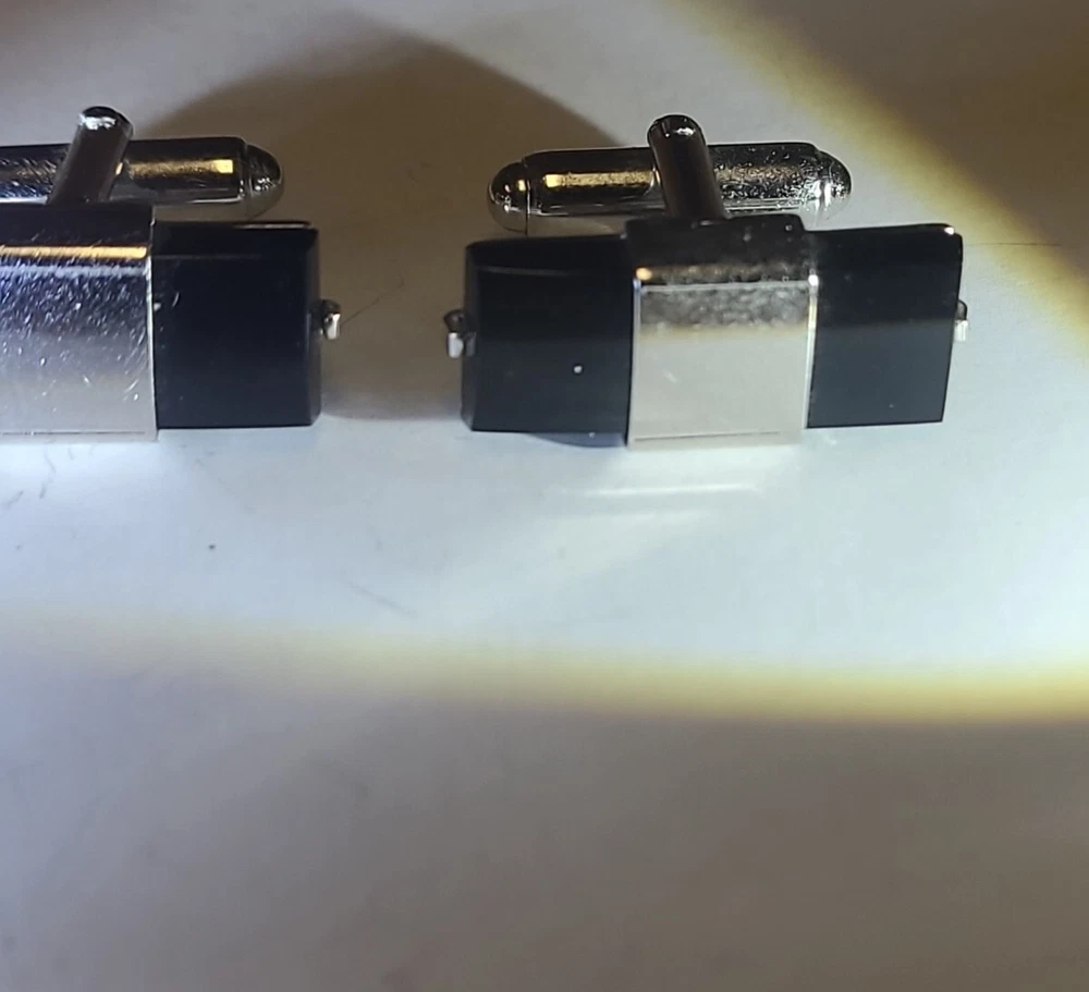 Vintage Anson Black Onyx Cufflinks marked Rectangle 3/4" Silvertone.