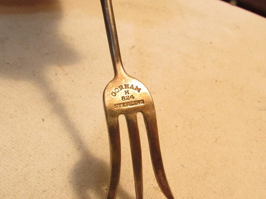 Vintage Antique Gorham 824 Sterling Silver 4.5" Fruit Cocktail 3 prong Fork THE ITEMS WE SELL ARE "AS FOUND". I DO NOT CLEAN NOR ATTEMPT TO RESTORE ANY OF THE PIECES. MANY BUYERS WANT THE ITEMS THEY PURCHASE TO BE IN ORIGINAL CONDITION. I TRY TO RESPECT THAT. WE DO OUR BEST TO PROVIDE DETAILED PHOTOS AND ACCURATE DESCRIPTIONS OF ALL ITEMS LISTED FOR SALE. VINTAGE PIECES ARE NOT PERFECT AND SOMETIMES HAVE IMPERFECTIONS SUCH AS TARNISHING, WEAR TO LUSTER, MINOR SCUFFING OR SCRATCHING AND SLIGHT OXIDATION. AS WITH ALL PRE-OWNED ITEMS SOME SIGNS OF WEAR SHOULD BE EXPECTED. PLEASE LOOK CAREFULLY AT ALL PICTURES AS THIS IS THE BEST REPRESENTATION OF THE CONDITION OF MY ITEMS PHOTOGRAPHS PROVIDE THE BEST AND MOST ACCURATE DESCRIPTION OF THE ITEM AND SUPERCEDES ANY WRITTEN DESCRIPTION. LOOK AT ALL PICTURES CAREFULLY. ANY ADDITIONAL INFORMATION CONCERNING THE TRUE AGE, ORIGIN, OR IDENTIFICATION OF AN ITEM IS GREATLY APPRECIATED AND WILL BE ADDED TO THE LISTING. THIS IS A RARE OPPORTUNITY FOR YOUR USE OR COLLECTIONS. SOMETIMES WE MISS SOMETHING. PLEASE NOTIFY US IF YOU SEE ANY INACCURACY WE WILL ADDRESS THE SITUATION RIGHT AWAY. WE CARE ABOUT OUR CUSTOMERS...MAKING SURE THAT OUR CUSTOMERS FIND EXACTLY WHAT THEY WANT. WE TAKE OUR CLIENT?S FEEDBACK SERIOUSLY AND WILL STRIVE TO ADDRESS THE NEEDS OF ALL CUSTOMERS. HOWEVER, SOMETIMES A PRODUCT FAILS TO MEET EXPECTATIONS. AS A MARKET PLACE PLATFORM WE WILL ADDRESS ANY ISSUES AS SOON AS POSSIBLE. WE ARE ALWAYS READY TO HEAR FROM YOU. THE EBAY ESTIMATED SHIPPING COST SHOWN IS FREQUENTLY INCORRECT. I WILL SHIP THE CHEAPEST and BEST. I CANNOT DETERMINE THAT UNTIL AFTER THE AUCTION. MOST OF THE ITEMS I SELL HAVE RECENTLY BEEN PURCHASED AT AUCTIONS OR ESTATE SALE....THUS I OFTEN AM RELYING ON INFORMATION RECEIVED FROM THE SELLER....SO BID ACCORDINGLY. BUYER CERTIFIES THEY ARE 18YRS OF AGE OR OLDER TO BID, BUY, LEGAL TO OWN AND POSSESS IN YOUR AREA, BUYER CERTIFIES THEY ARE IN COMPLIANCE WITH ALL FEDERAL, STATE, & LOCAL LAWS PERTAINING TO SHIPPING OF THIS ITEM TO YOUR LOCATION, NO GUARANTEE/WARRANTY IS IMPLIED TO THE USE OF THIS ITEM, BUYER ACCEPTS/ASSUMES ALL RESPONSIBILITY/RISKS/LIABILITY IN THE USE OF THIS ITEM ****** IF YOU HAVE ANY PROBLEMS WITH THIS LISTING, SHIPPING COSTS, DESCRIPTIONS, COMMUNICATIONS, ETC. PLEASE CONTACT ME SO THAT I CAN CORRECT THE PROBLEM, CHECK MY FEEDBACK. YOU WILL RECEIVE THE EXACT ITEM PICTURED. I WILL COMBINE MULTIPLE ITEMS WHEN PACKING THEM WHEN POSSIBLE. ITEM WILL SHIP FROM 65804 THANK YOU FOR LOOKING. GOOD LUCK BIDDING.