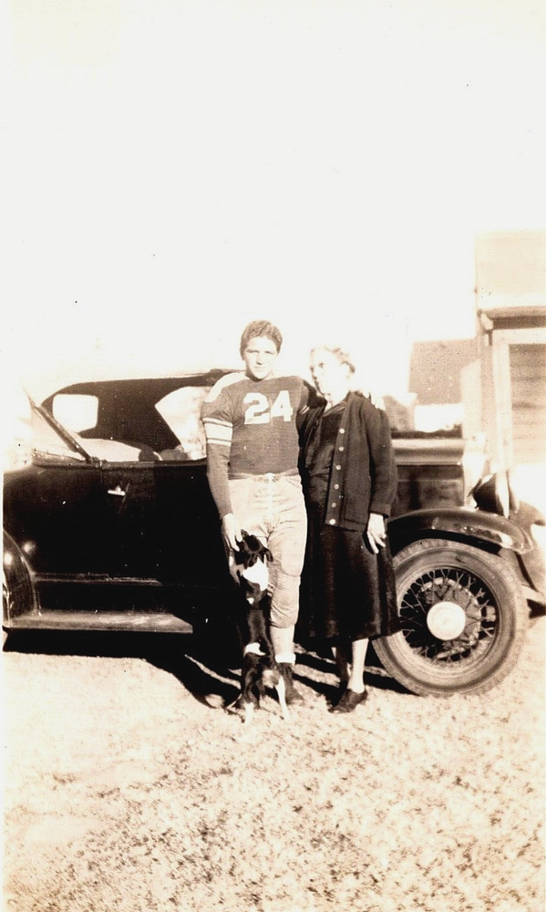 Vintage Antique Photo Car Football Player Boy Lady Woman Puppy Dog