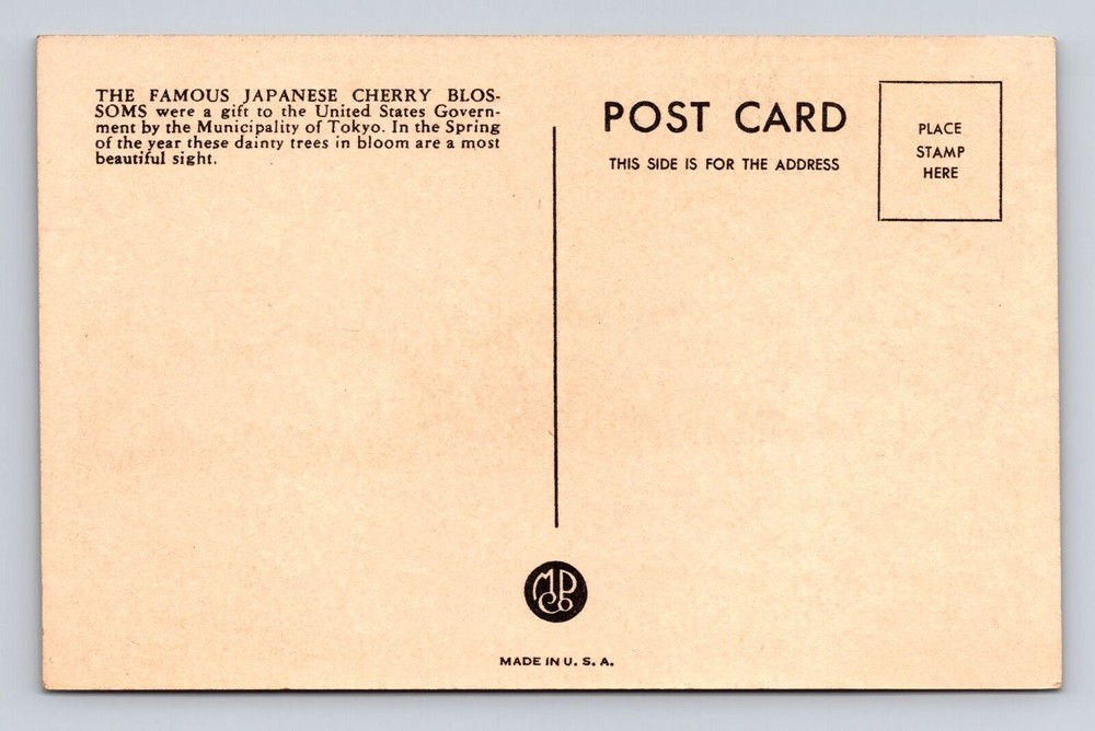Vintage Antique Postcard of Cherry Blossoms at Washington DC Capitol Building