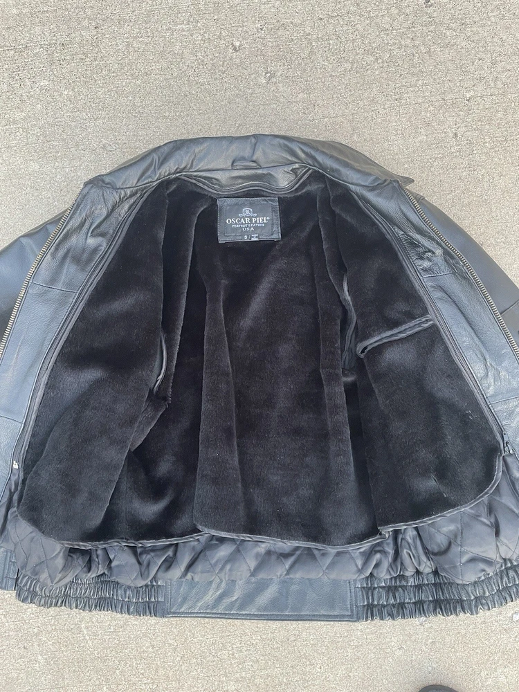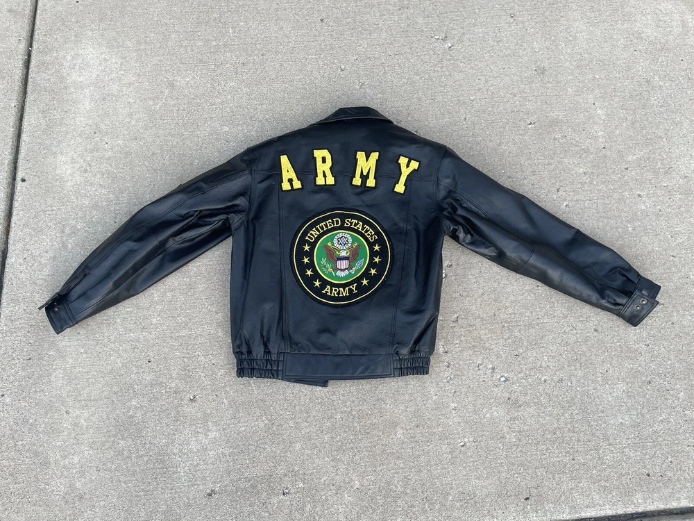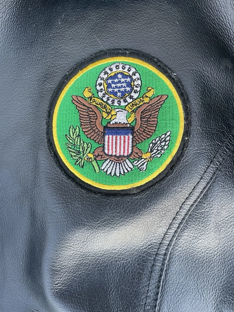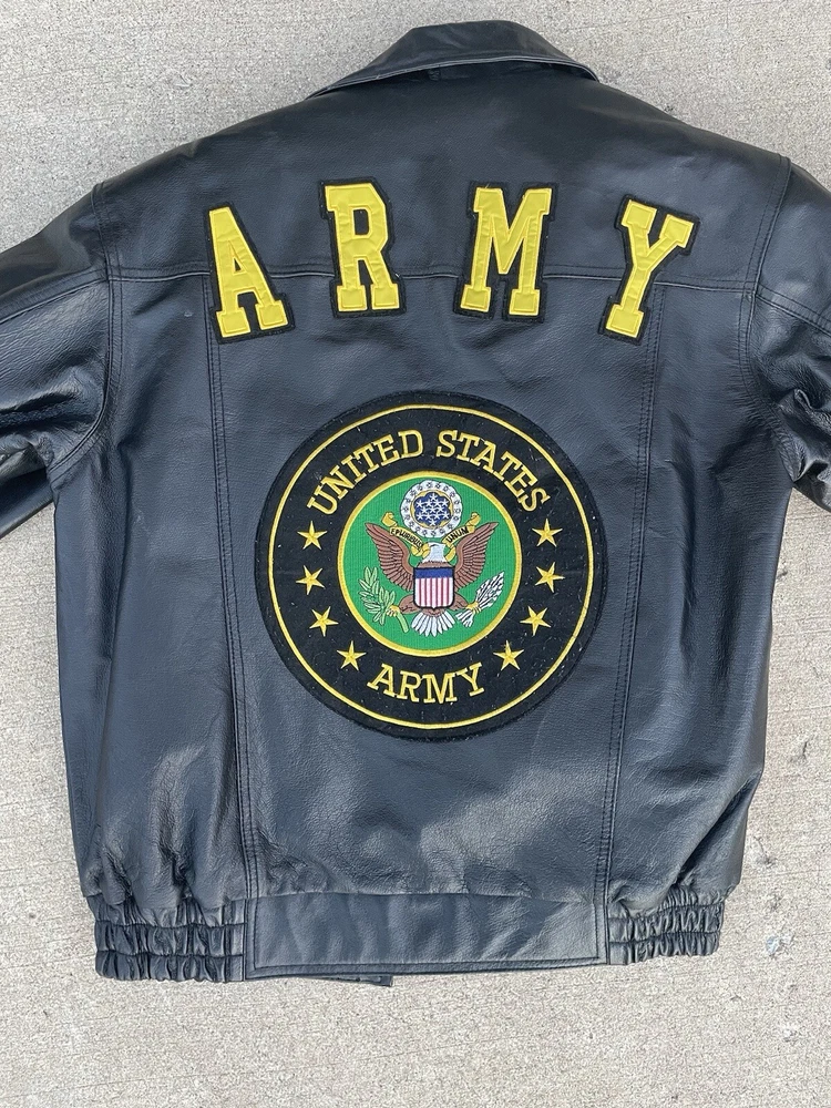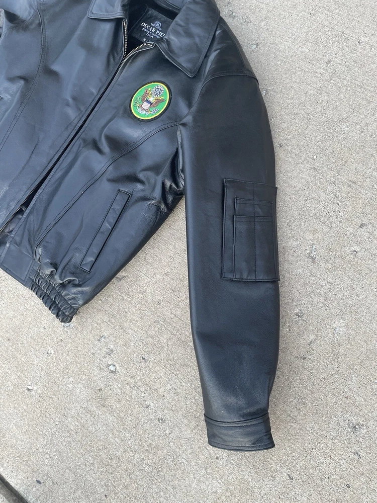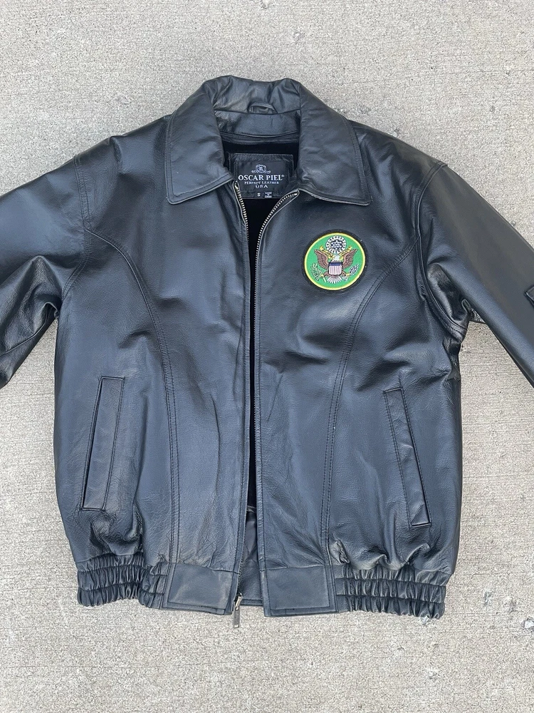 Great condition Inner lining is detachable Army patches embroidered on an Oscar Piel leather jacket
