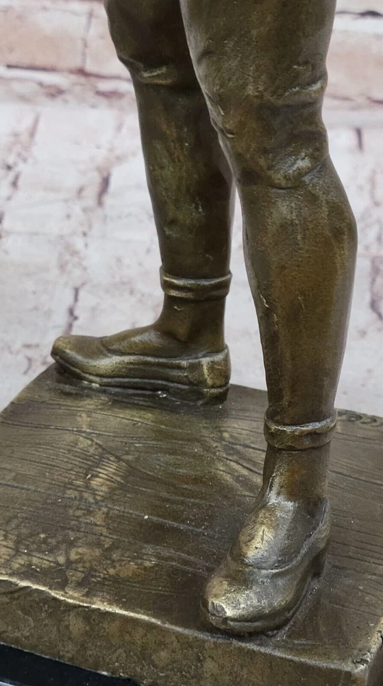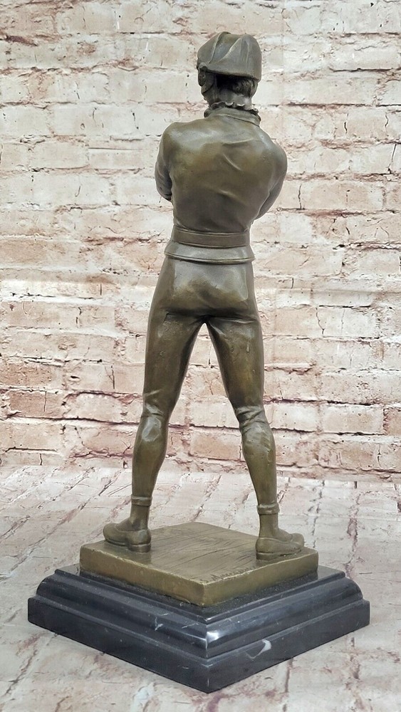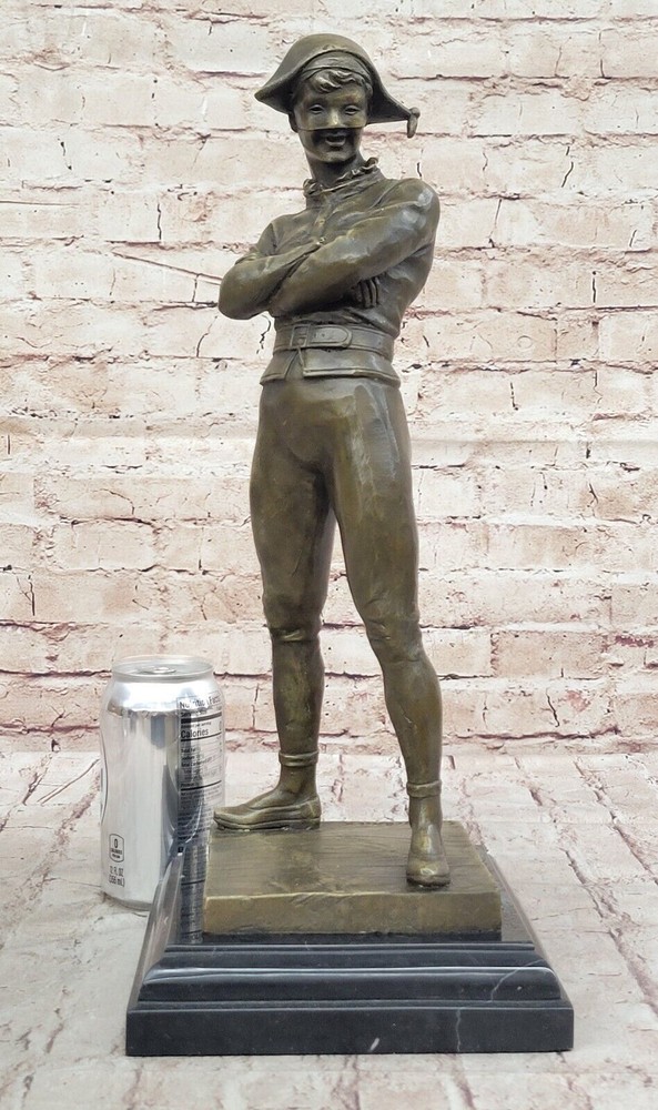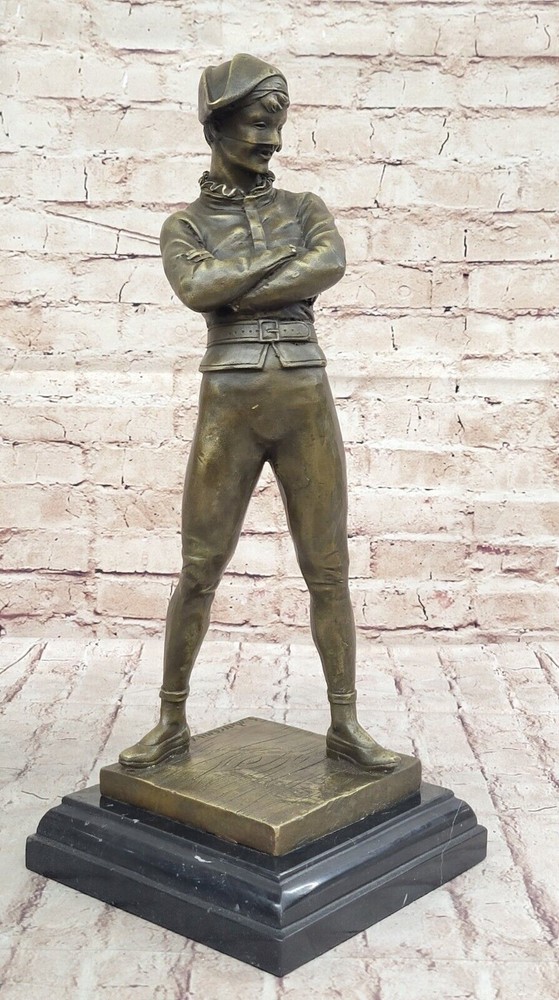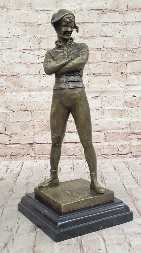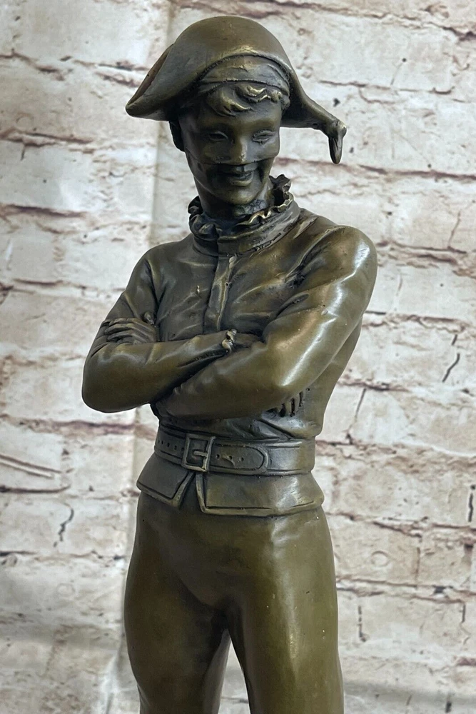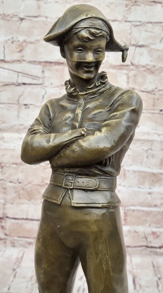 VINTAGE ART DECO STYLE HARLEQUIN JESTER OLD BRONZE SCULPTURE STATUE FIGURE GIFT VINTAGE ART DECO STYLE HARLEQUIN JESTER OLD BRONZE SCULPTURE STATUE FIGURE GIFT Condition : This sculpture is in perfect condition. Bronze Dimensions with Marble Base: Height 17" X Width 7" Marble Dimensions:7" X 7" Height without base:16" Weight:16 LBS Inventory:58YRD11157585 "Lively Jester" by French Artist Marceaux is an exquisite bronze sculpture that captivates viewers with its incredible level of detail and playful charm. Crafted using the revered lost wax method, this figurine showcases the masterful artistry and skill of the talented artist. The sculpture portrays a mischievous jester in a dynamic pose, seemingly frozen in a moment of animated movement. Every aspect of the jester's attire and expression is meticulously sculpted, revealing the artist's commitment to capturing even the most minute nuances. From the ornate ruffles on the jester's costume to the intricate lines etched on the face, each detail is brought to life with remarkable precision. Marceaux's choice of bronze as the medium for this artwork adds a timeless quality to the sculpture. The warm, earthy tones of the bronze enhance the character of the jester, evoking a sense of nostalgia and elegance. The metallic sheen of the bronze surface accentuates the sculpture's three-dimensional form, creating a mesmerizing interplay between light and shadow. The lost wax method employed by Marceaux ensures the utmost quality and durability of the sculpture. This traditional technique involves creating a wax model, which is then encased in a mold. The wax is melted away, leaving a void that is filled with molten bronze. The result is a solid bronze sculpture that faithfully reproduces every intricacy of the original model. "Lively Jester" stands as a testament to Marceaux's artistic prowess and his ability to breathe life into inanimate materials. This enchanting sculpture captures the spirit of the jester, a beloved figure in traditional entertainment, and invites viewers to revel in its whimsical energy. Whether displayed in a gallery, a collector's home, or any space yearning for a touch of mirthful elegance, this bronze figurine is sure to enchant and captivate all who encounter it. Vintage Solid Genuine Bronze Statue of Arlequin by René de Saint-Marceaux www.bronzhaus.com Video will open in a new window Using the eBay App? Paste link into a browser window: [isdntekvideo] Shipping Terms : Most of our items are shipped via USPS (United States Postal Service) mail or UPS. Most orders are shipped within 24-48 hours of purchase. Please be aware that not all items are available for USPS shipping due to size and weight. We do ship to Hawaii, Alaska, Canada, Puerto Rico, APO/AE, and U.S. Virgin Islands, however, an additional charge may be required. Please contact us before making any purchases in these areas. For Non-USA customers, you may be responsible for all duty, tax, brokerage fees that may be due upon delivery (shipping costs cover freight charges only). We also ship internationally. Please refer to the "Shipping and Handling" chart for the rates for each area. Payment : We accept just about any form of payment. PayPal, Master Card, Visa or American Express credit cards. Money orders, cashiers checks, and even personal or business checks. For governmental institutions, we will also accept a purchase order. Please understand that for personal or business checks we have to wait for the check to clear (usually 7 days) before shipping. Condition : New Detailed Hand Crafted Hot Cast Bronze Satisfaction Guaranteed. This is Stock Photo, Slight Color Variation!! Listing and template services provided by inkFrog