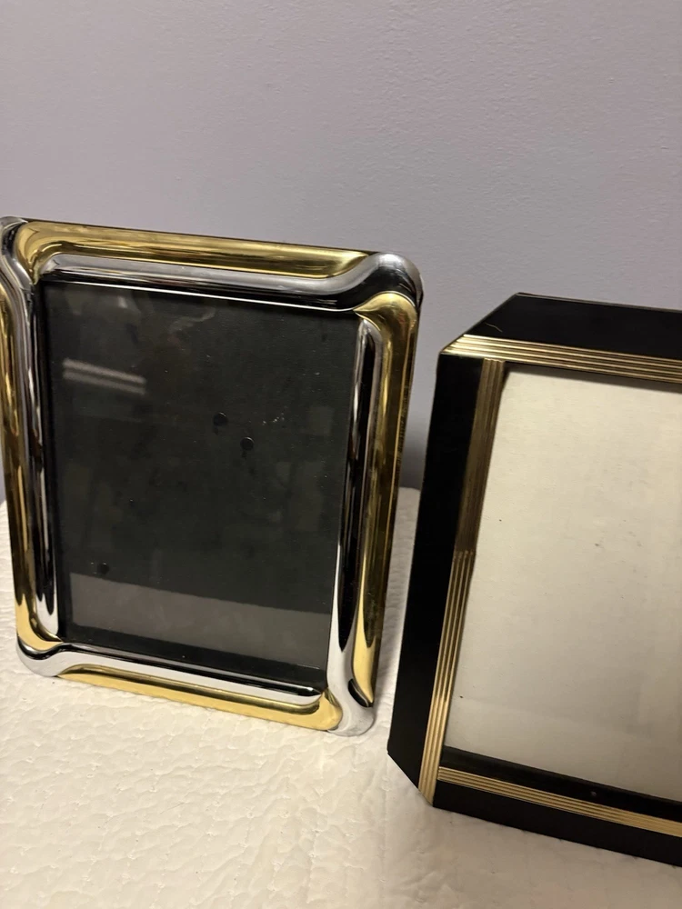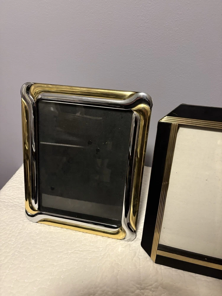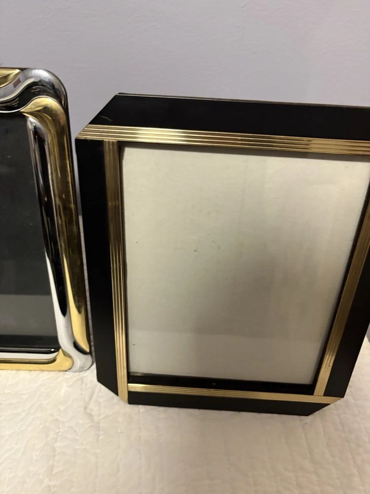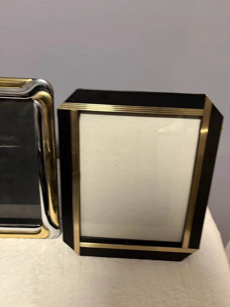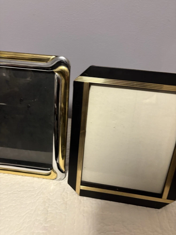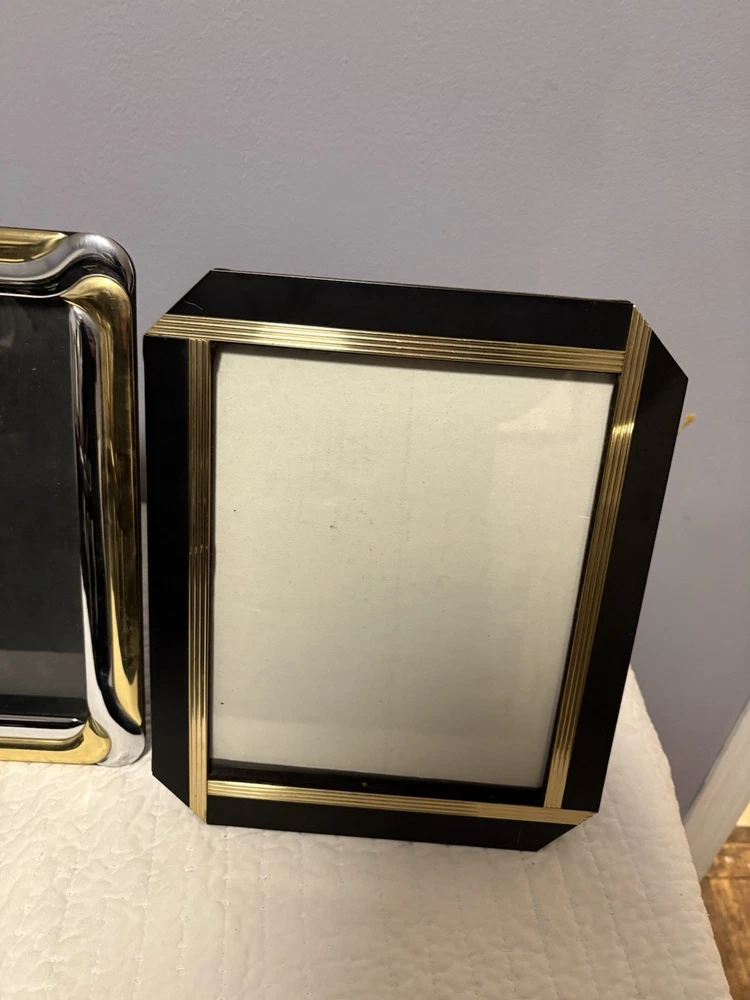 2 Bijou Ornate Enamel Picture Frames Felt Easel Back 4”x6”, 4”x4” Photo Crystals