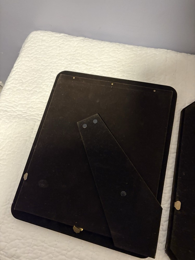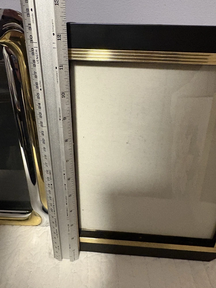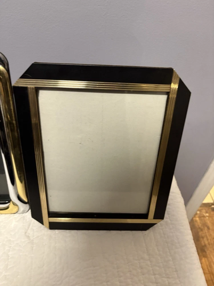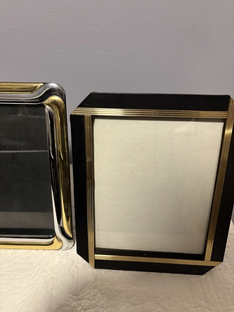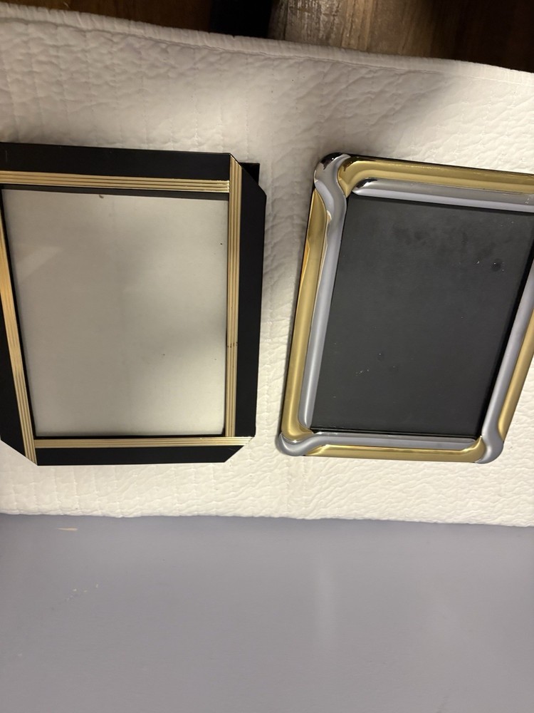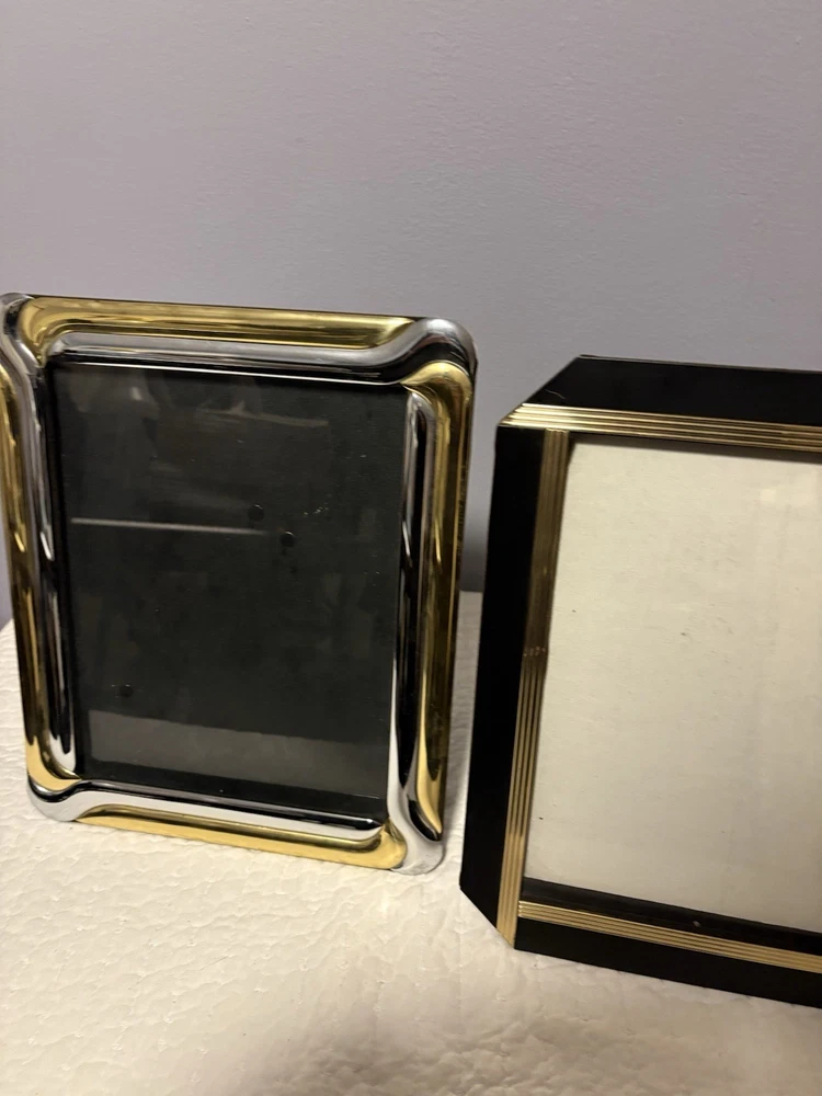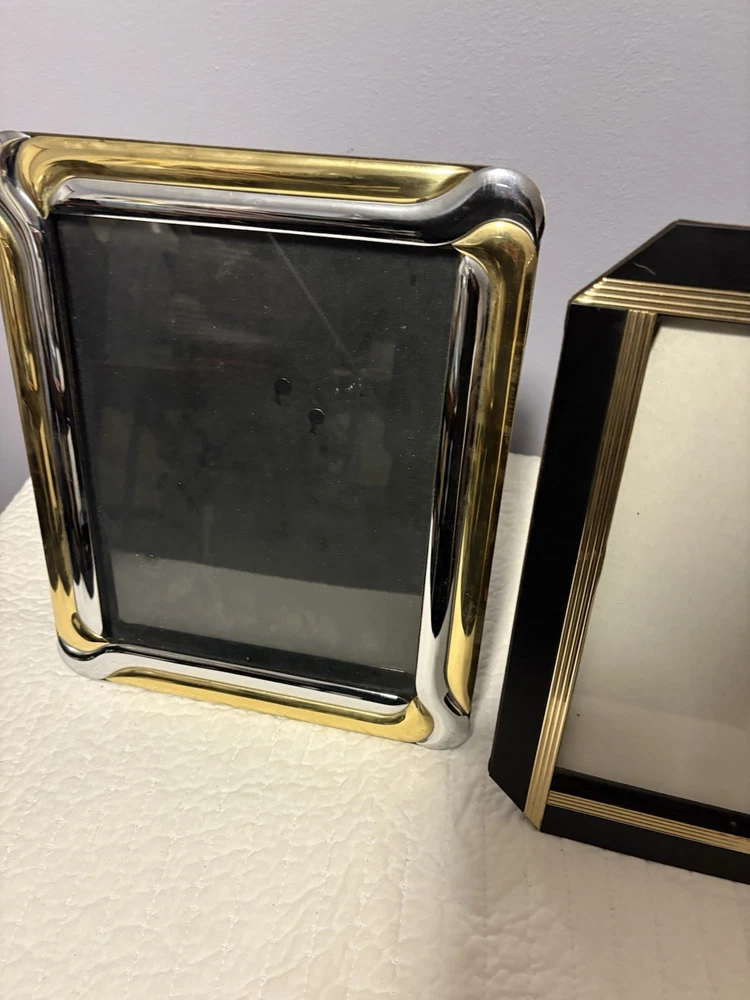 2 Bijou Ornate Enamel Picture Frames Felt Easel Back 4”x6”, 4”x4” Photo Crystals