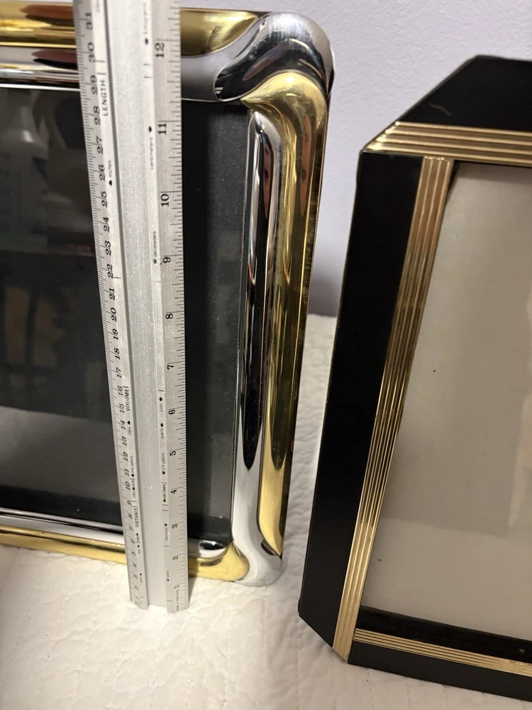 These Vintage Art Deco-inspired Picture Frames are perfect for all occasions and feature a classic rectangular shape with a rear-loading design for easy photo insertion. Made with clear glass and an Art Deco style, these frames are original from the early 20th century (1911-1940) and have a timeless look that complements any decor. Each frame can hold one photo and is less than 10 inches in length, making it a versatile and stylish addition to your home or office.
